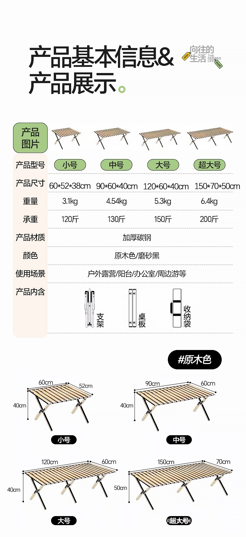 • [60cm 통나무색상] + 수납가방 + 두꺼워진 테이블다리