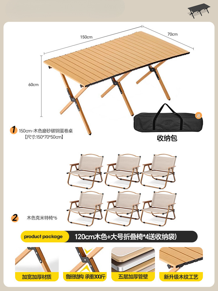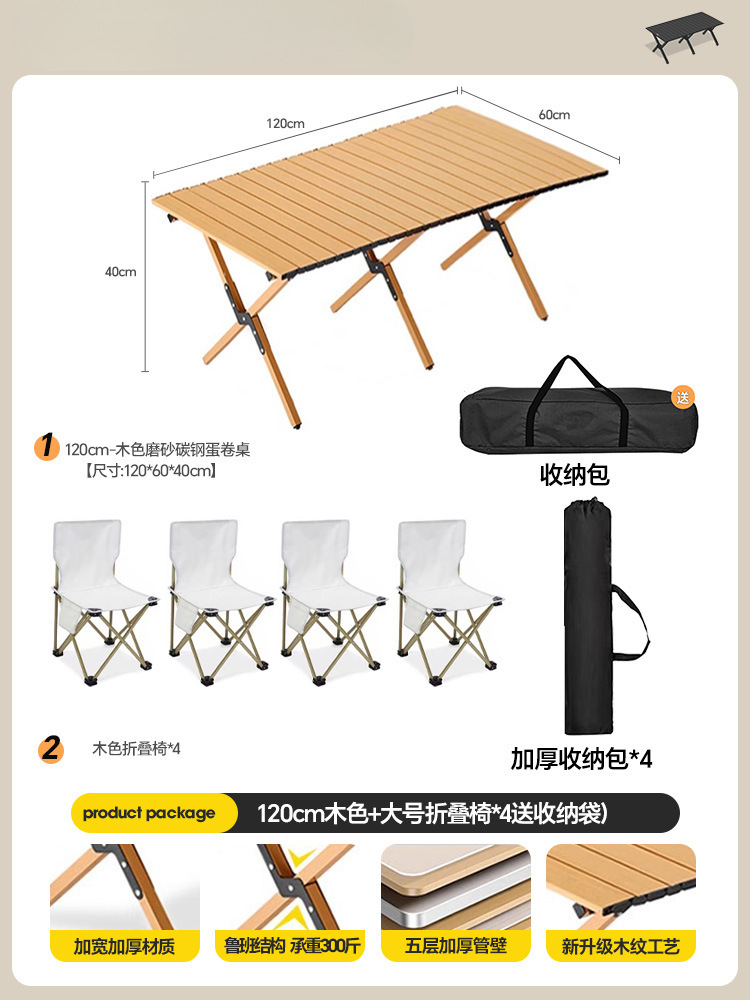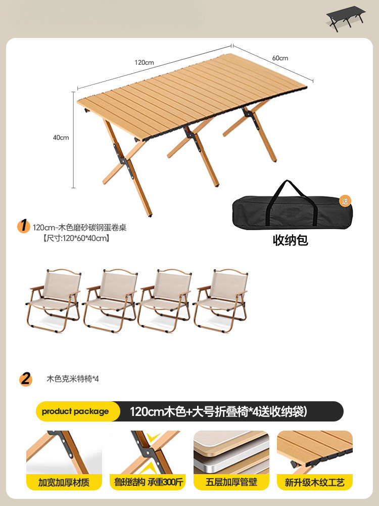 • 【】120cm 원목색상+접이식의자*4+수납가방
