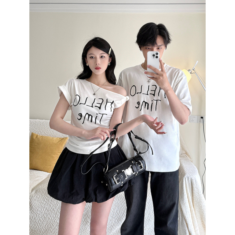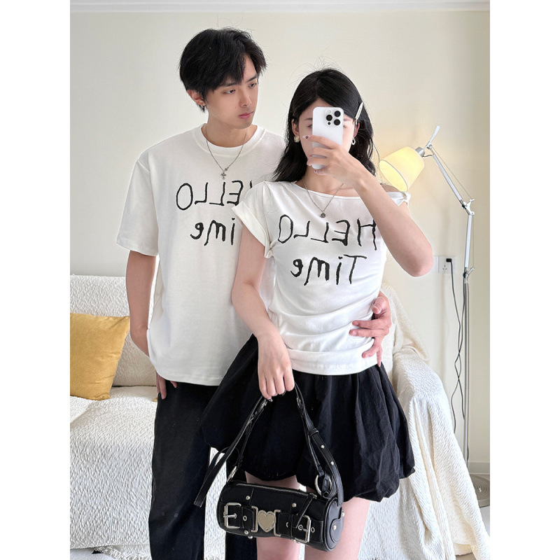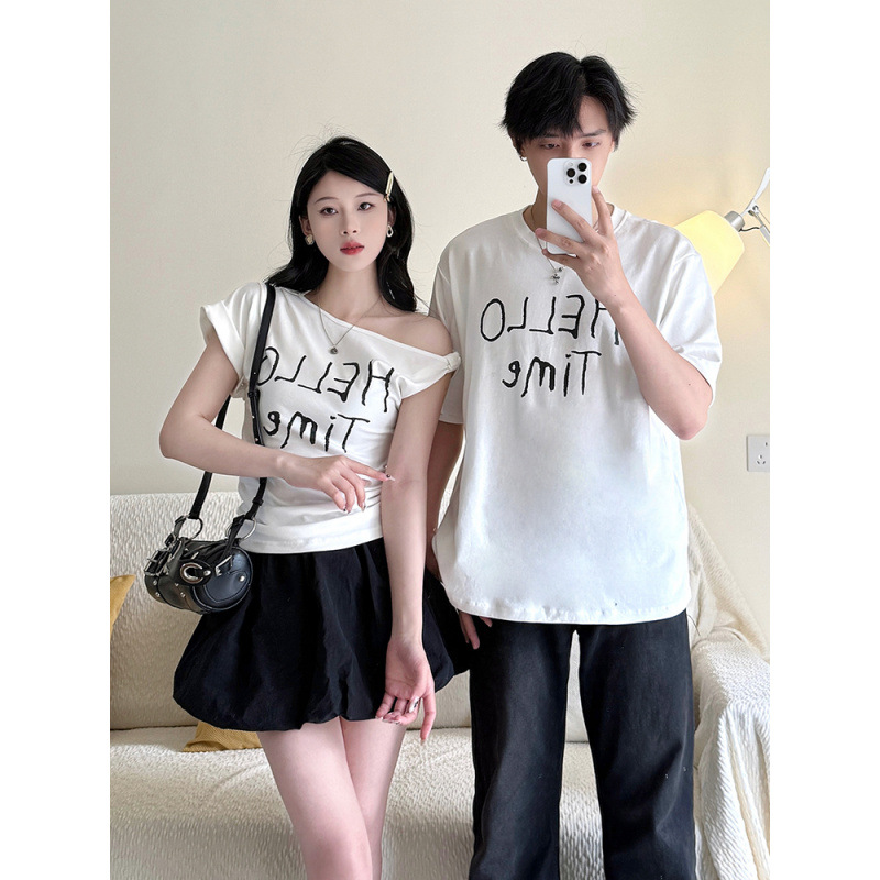 2025 새로운 여름 커플웨어 레터 캐주얼 반팔 프린트 레터 티셔츠 다용도 탑스토어 가기