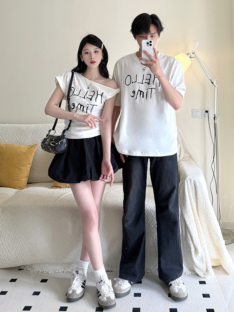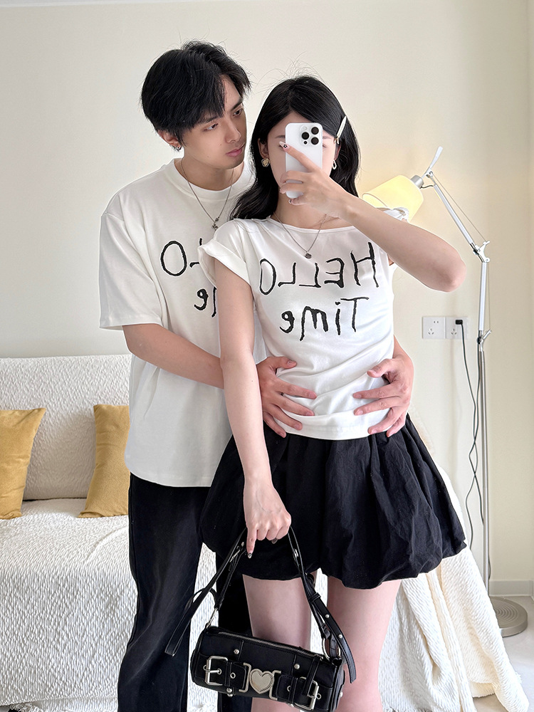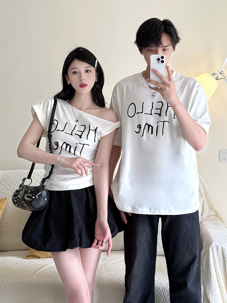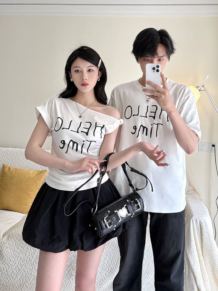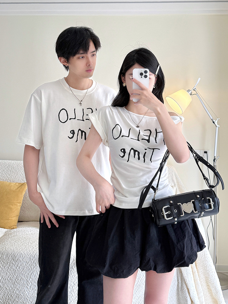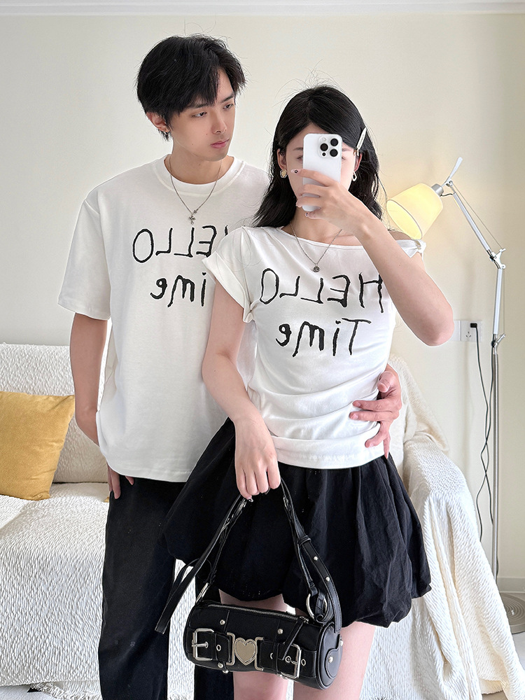 2025 새로운 여름 커플웨어 레터 캐주얼 반팔 프린트 레터 티셔츠 다용도 탑