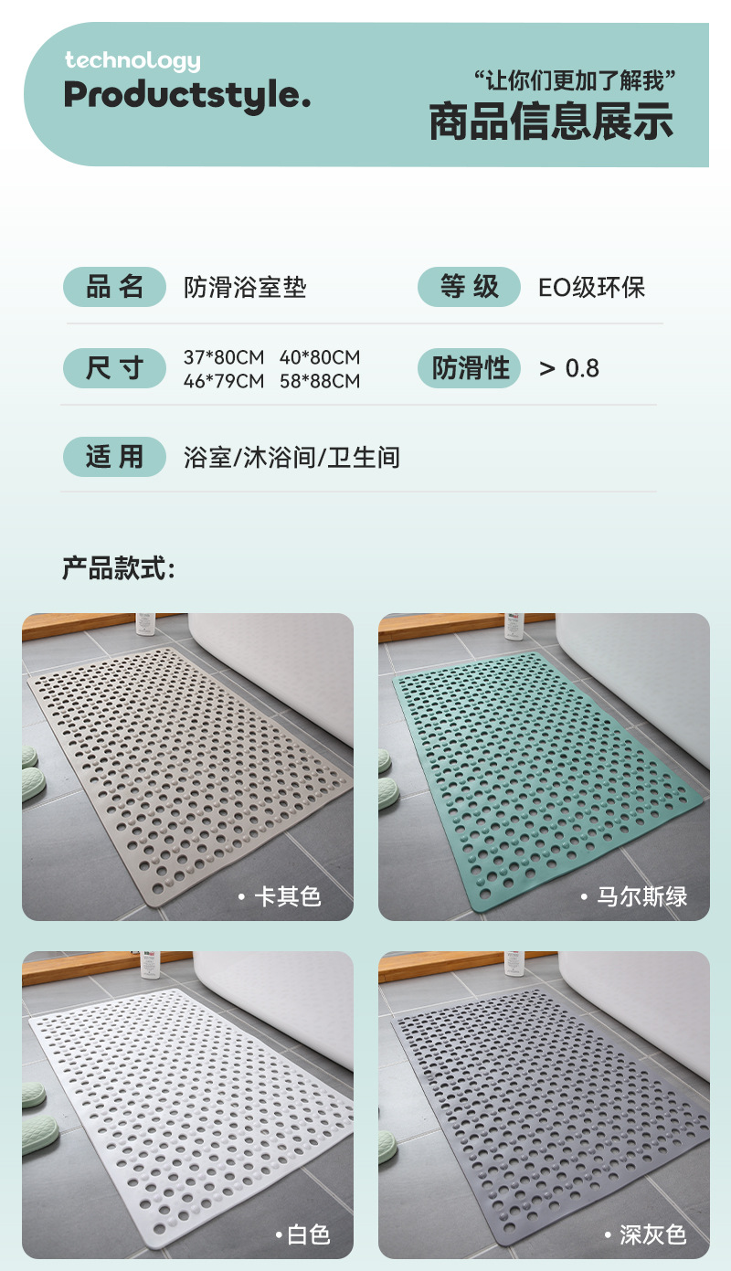 욕실 환경 보호 미끄럼 방지 바닥 매트 가정용 목욕 방수 샤워 발 매트 화장실 샤워 빨판 드롭 방지 매트스토어 가기