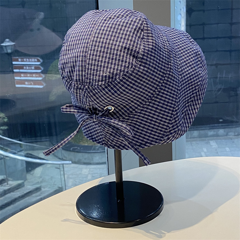 일본식 격자 무늬 컬 엣지 어부 모자 여성의 여름 새 도착 빅 브림 빠른 건조 차양 및 선 스크린 모자 유행 얼굴 공개 작은 분지 모자