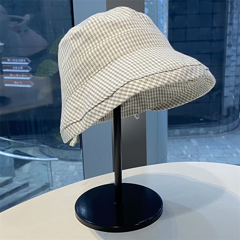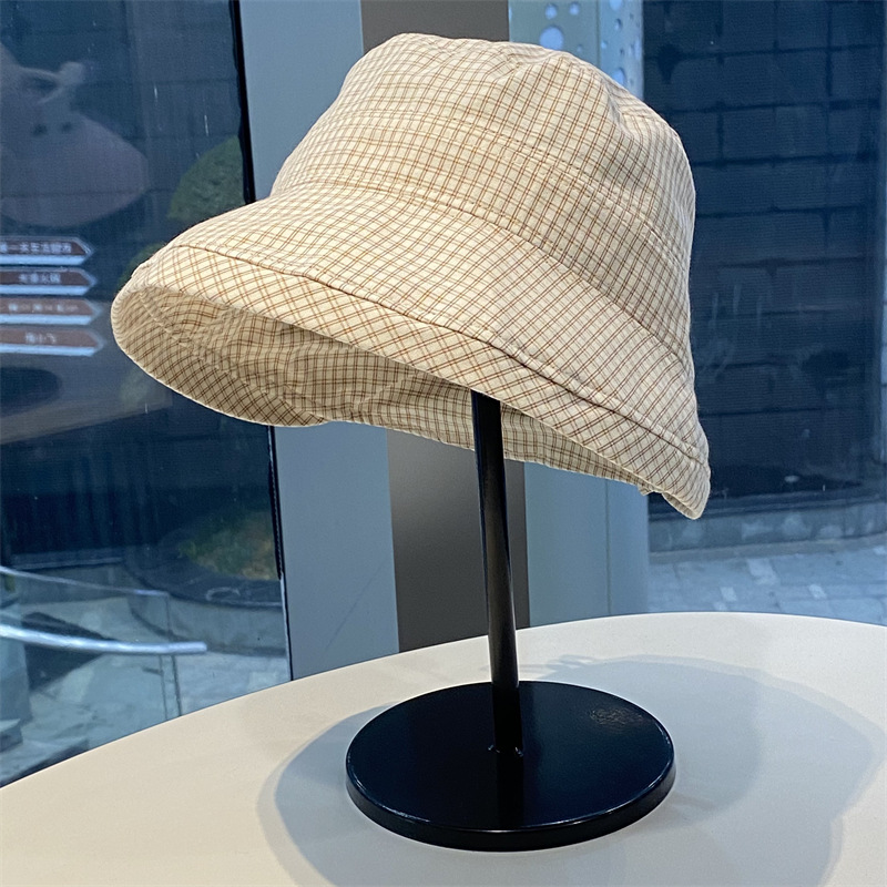 일본식 격자 무늬 컬 엣지 어부 모자 여성의 여름 새 도착 빅 브림 빠른 건조 차양 및 선 스크린 모자 유행 얼굴 공개 작은 분지 모자스토어 가기