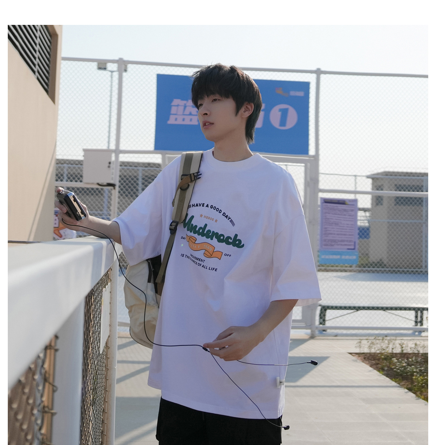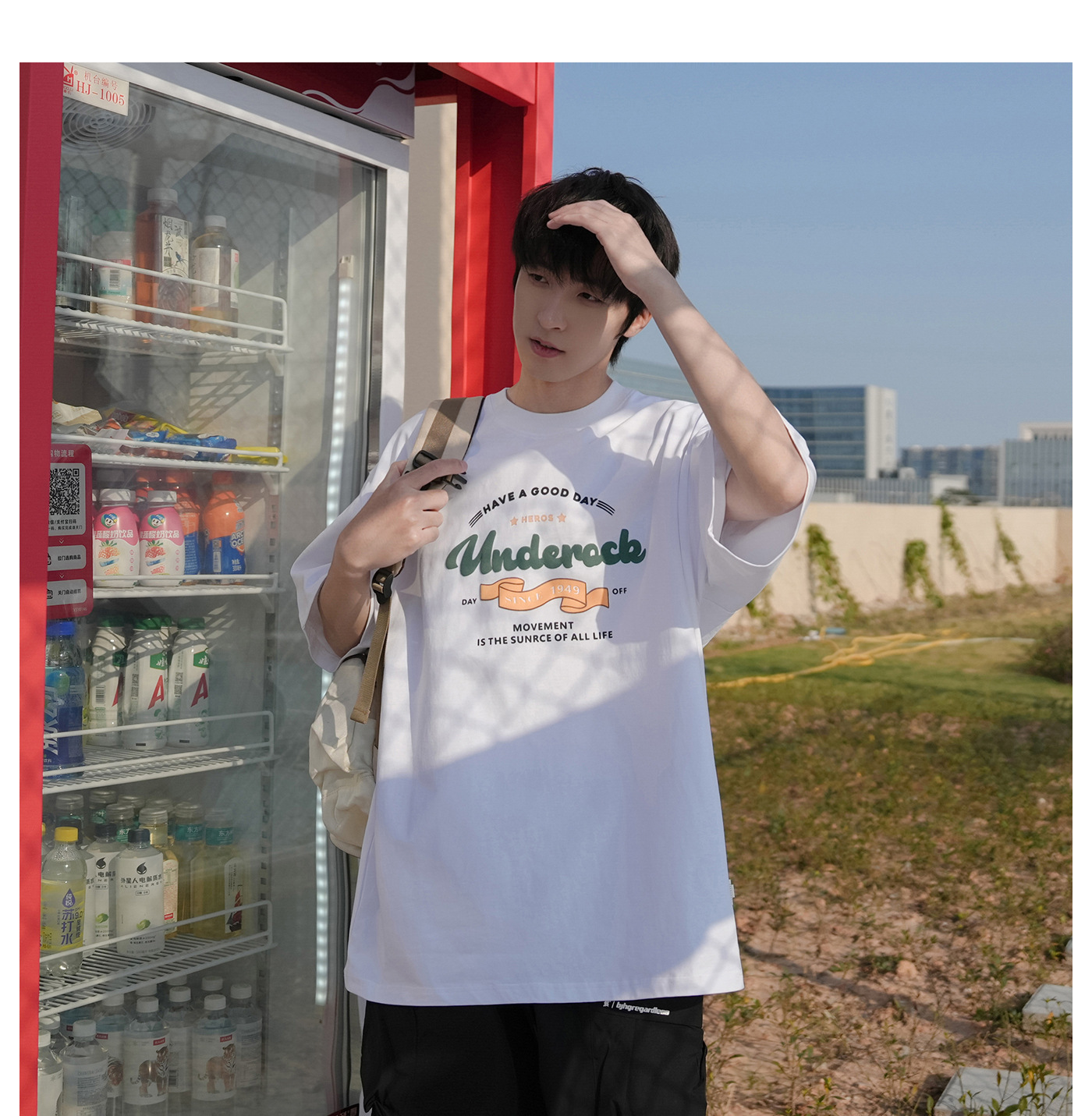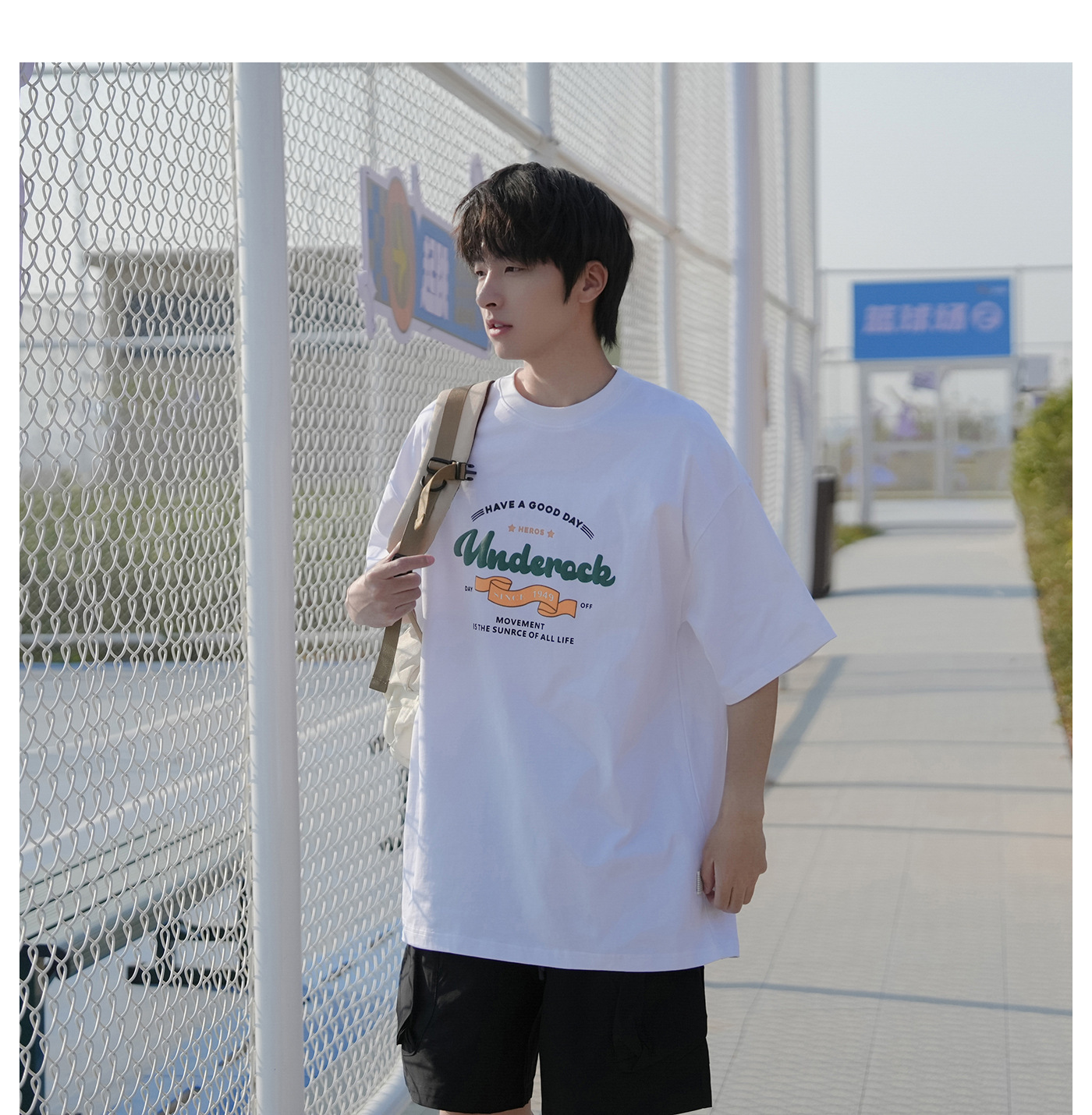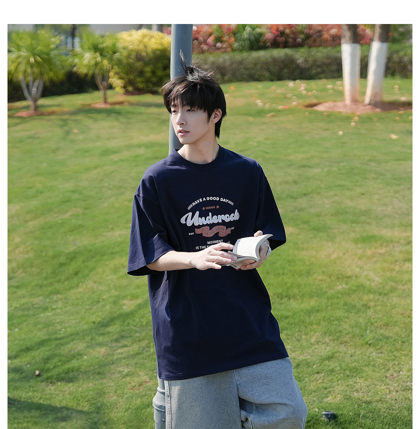 공장 직접 공급 220g 헤비급 레터 프린트 티셔츠 남성용 및 여성용 반팔 여름 미국식 5부 소매 순면 티셔츠스토어 가기