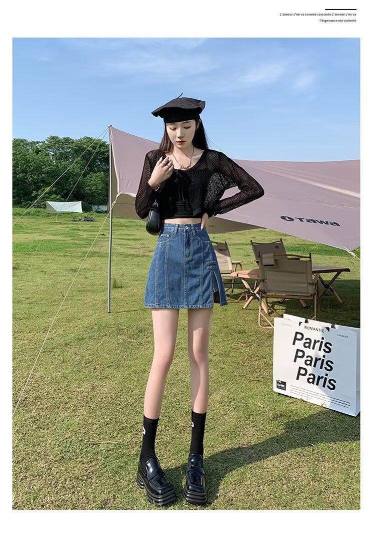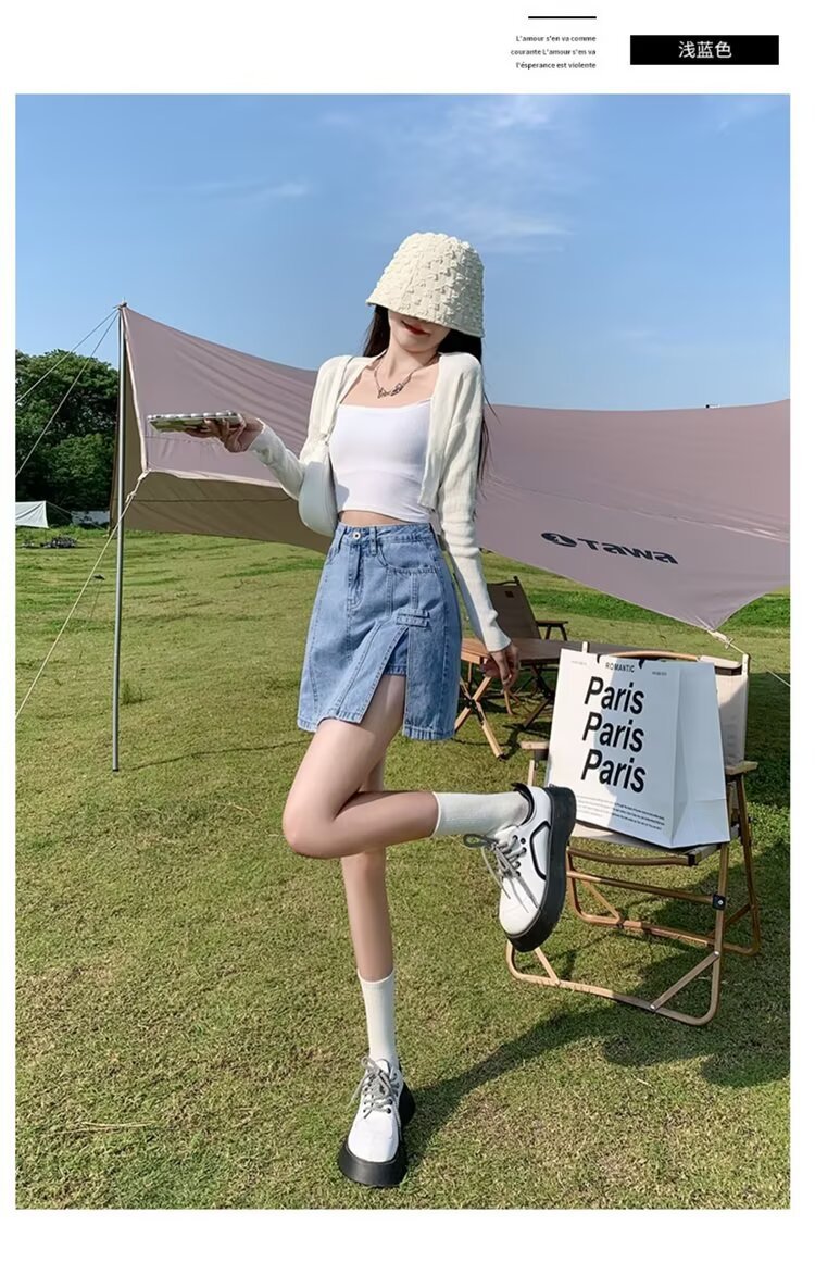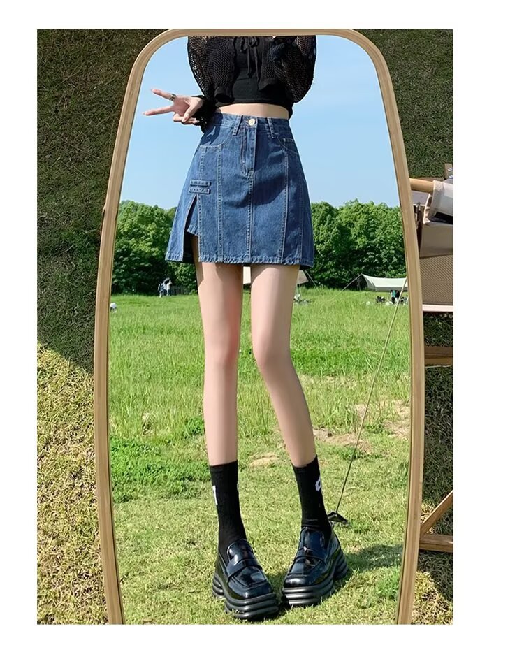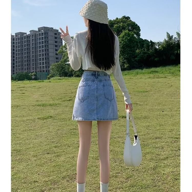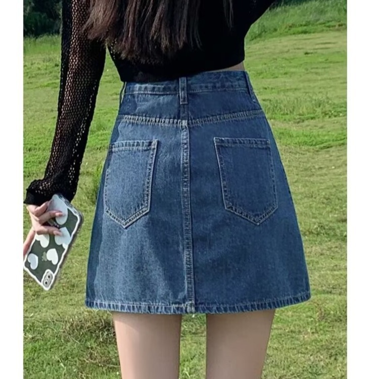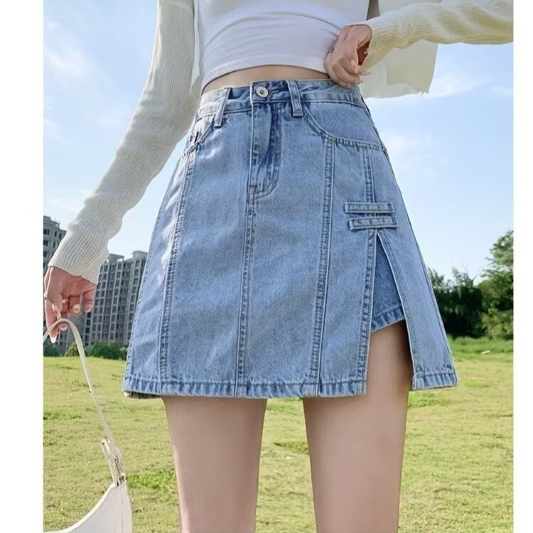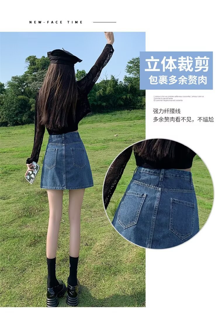 여름 하이 웨이스트 스커트 여성 여름 얇은 2025 새로운 스타일 a 라인 작은 모피 가장자리 슈퍼 짧은 데님 스커트스토어 가기