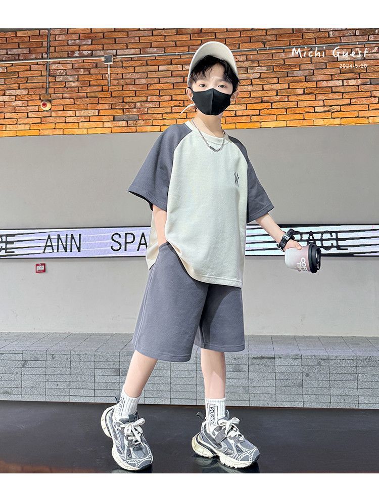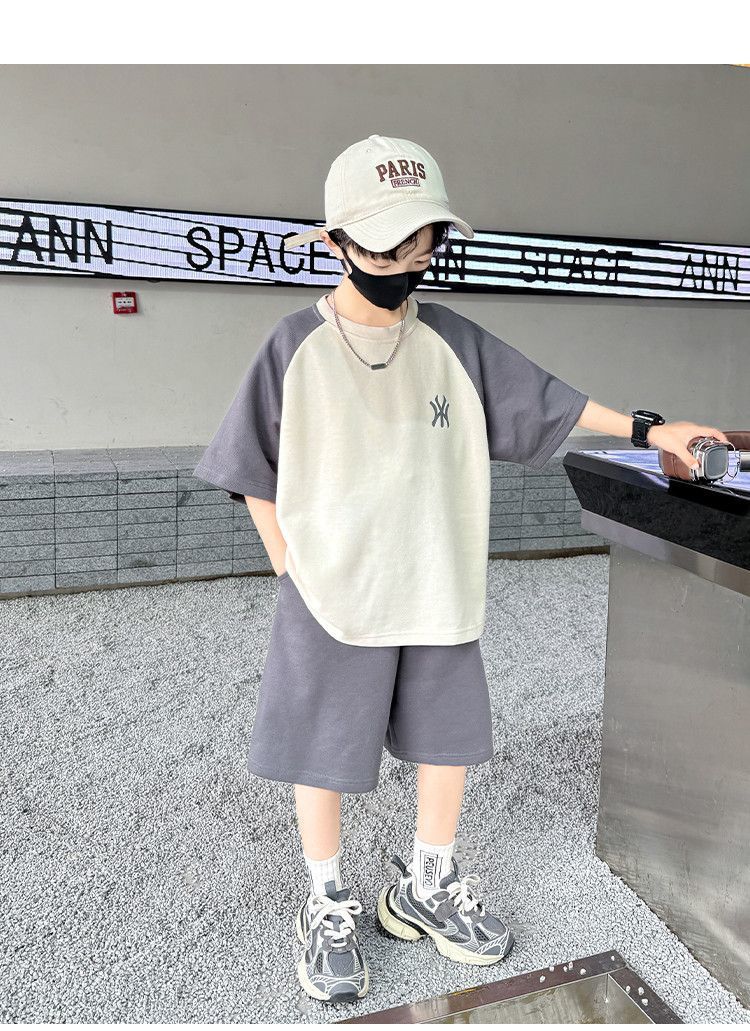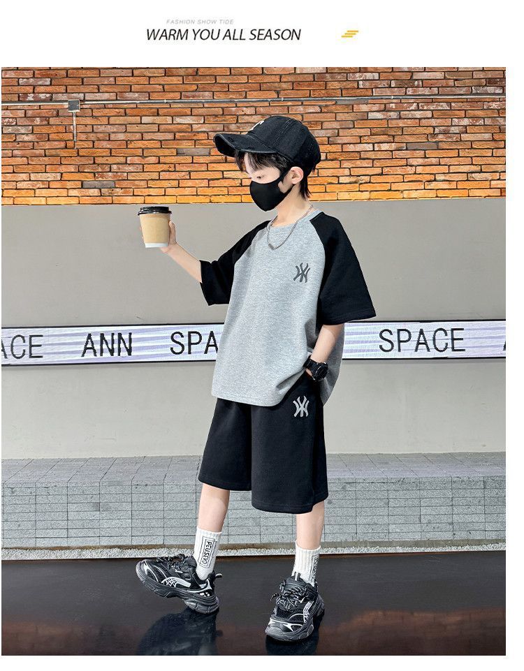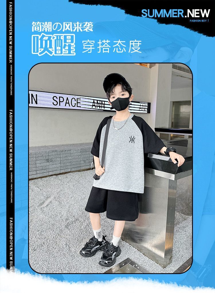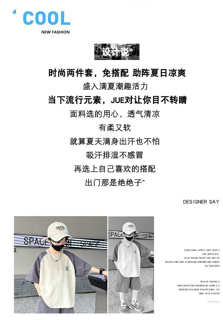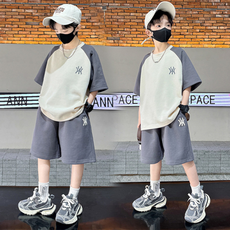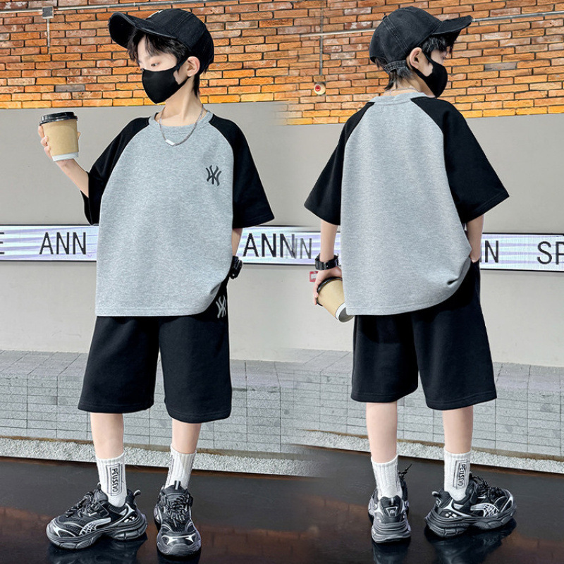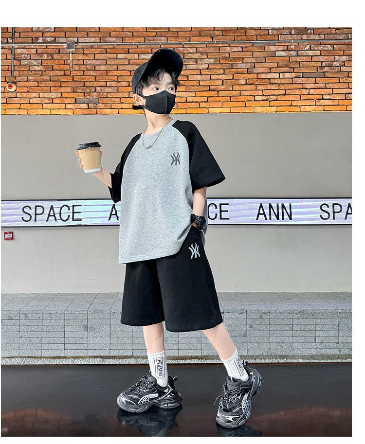 아동복 소년 여름 정장 새로운 스타일 중대형 어린이 2025 유행 여름 스포츠 반팔 투피스 래글런 슬리브