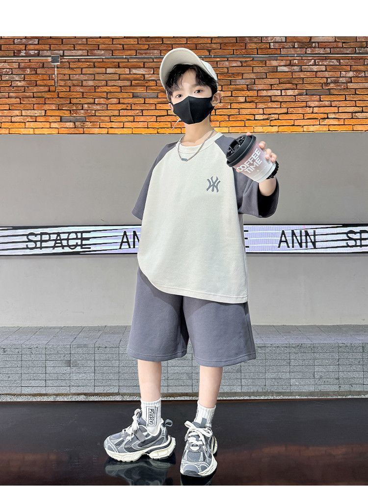 아동복 소년 여름 정장 새로운 스타일 중대형 어린이 2025 유행 여름 스포츠 반팔 투피스 래글런 슬리브스토어 가기