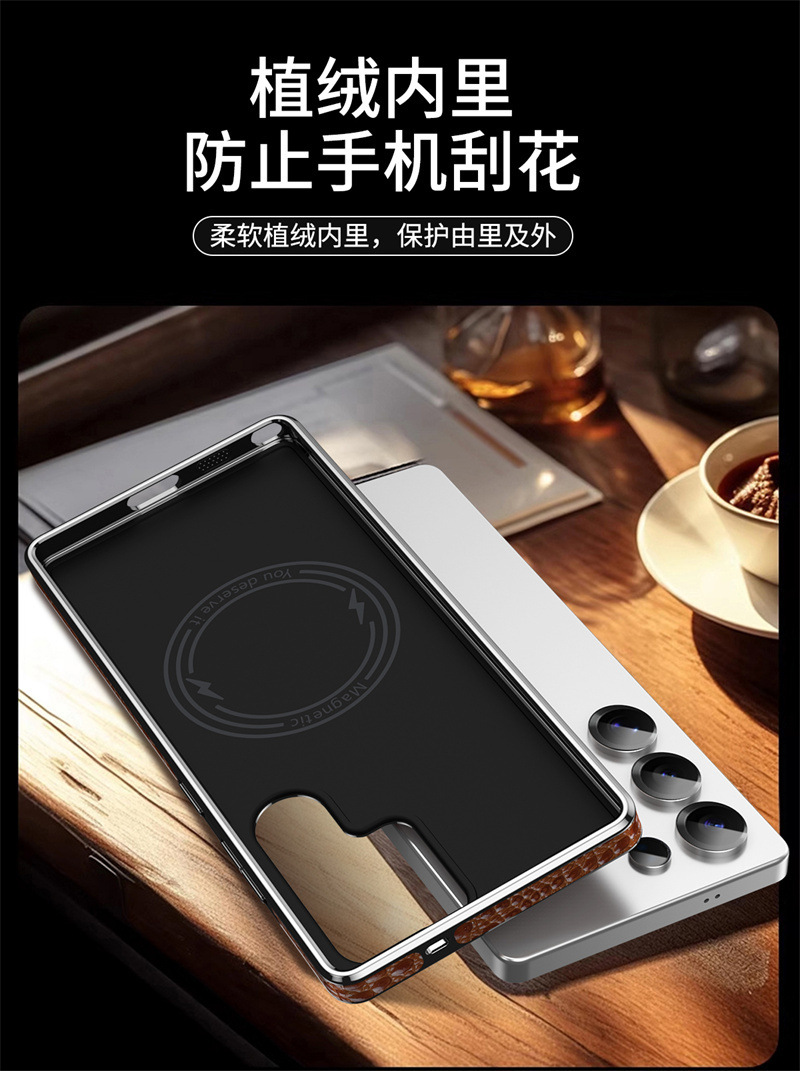 삼성 S25 울트라 전기 도금된 악어 패턴 헤드 레이어 소 가죽 자기 산산조각 방지 전화 케이스