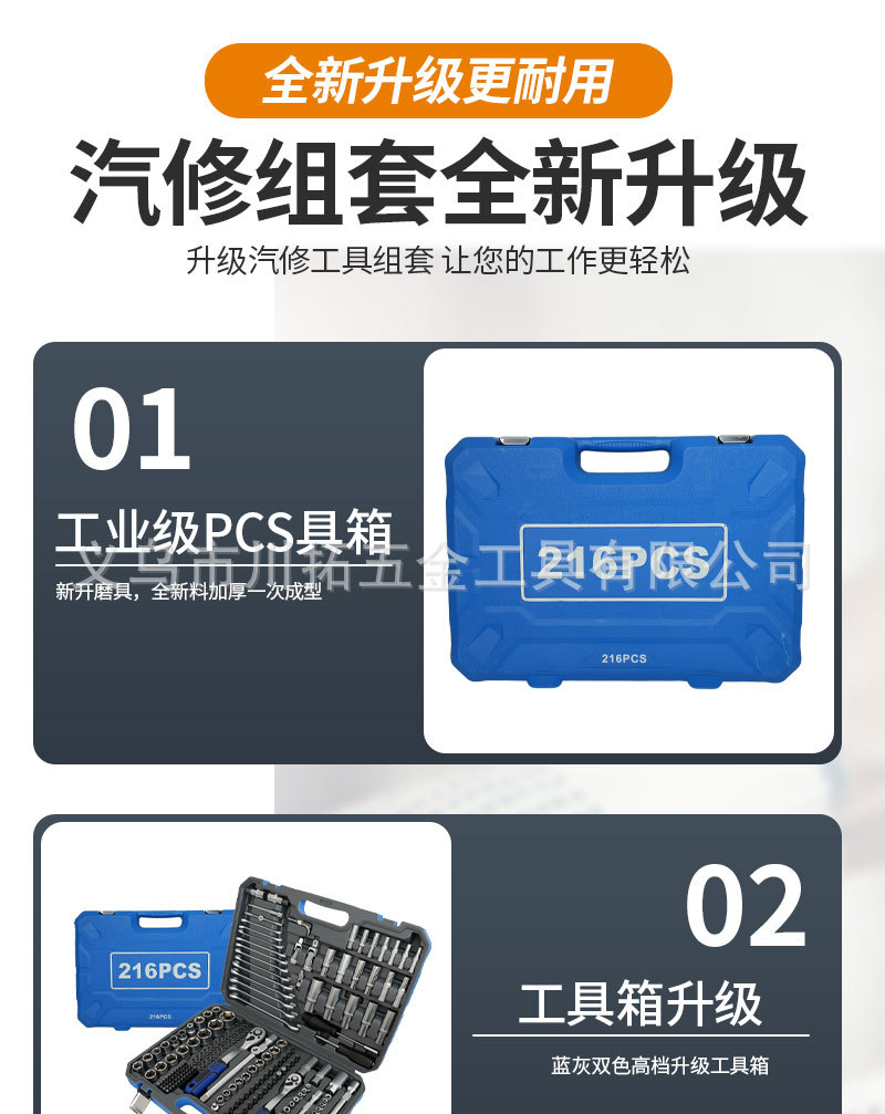 216피스 세트 72치 대외 무역 국경 간 인기 판매 파란색 및 회색 2색 상자 진주 니켈 래칫 렌치 슬리브 조합 수리