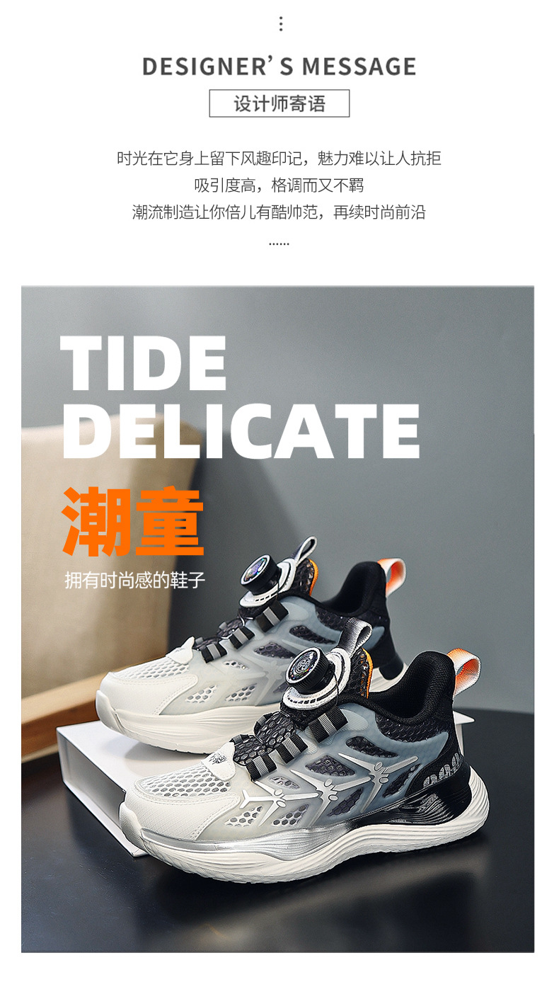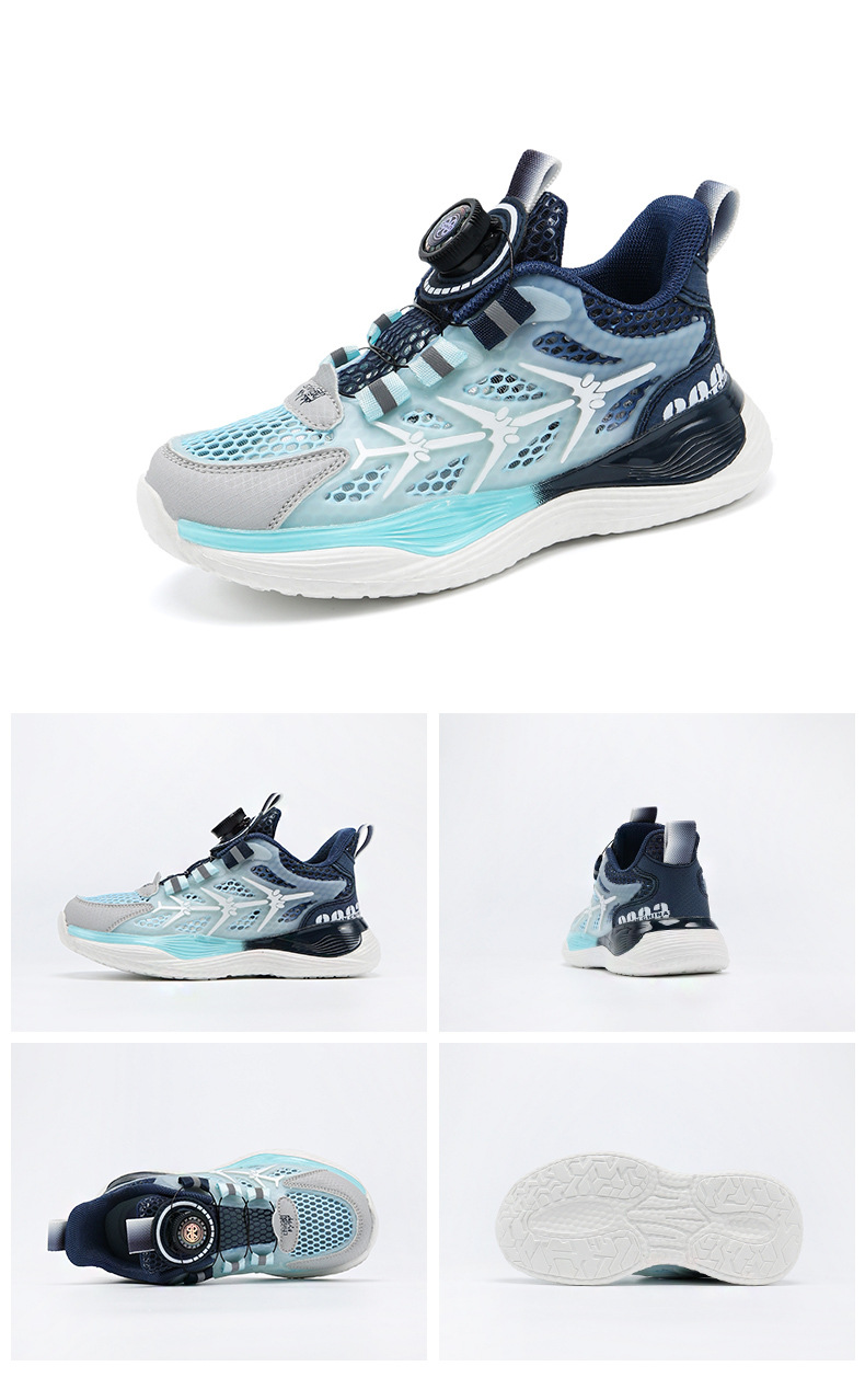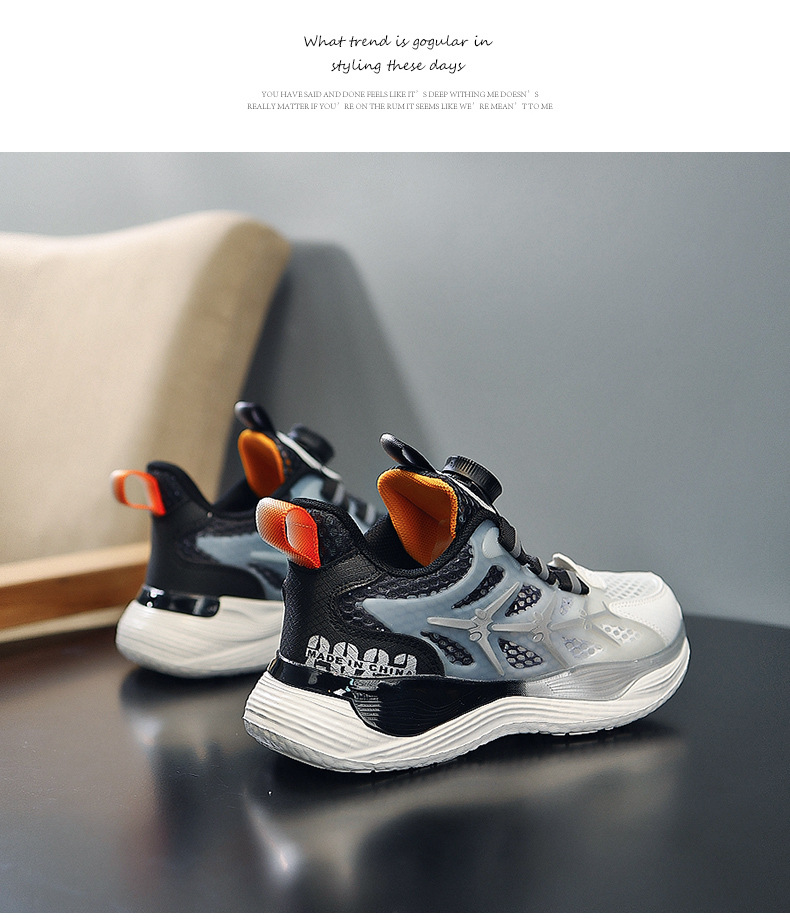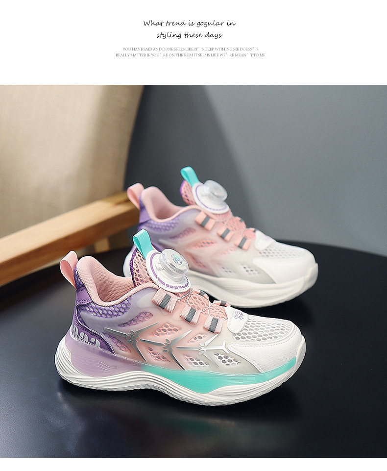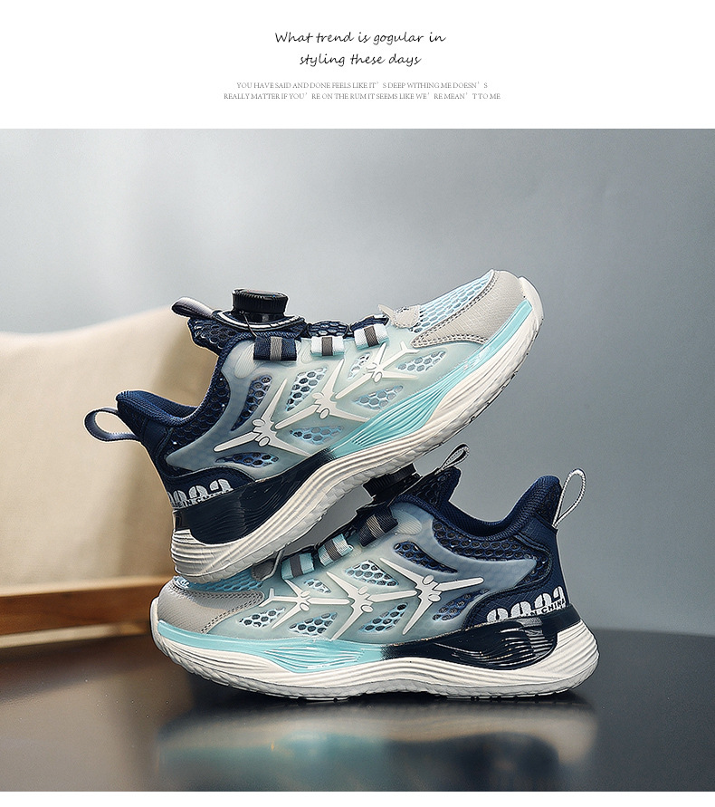 소년 신발 여름 메쉬 통기성 2025 새로운 어린이 스포츠 단일 메쉬 신발 큰 어린이를위한 부드러운 바닥 회전 버튼
