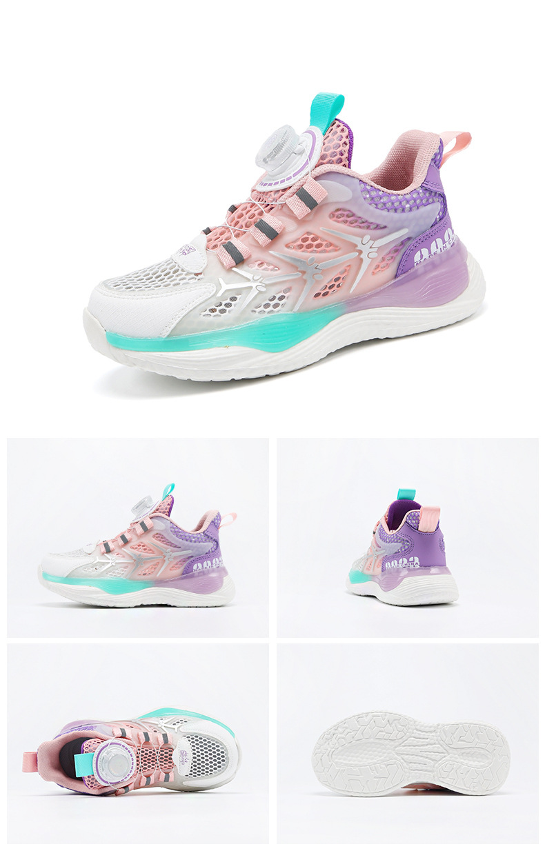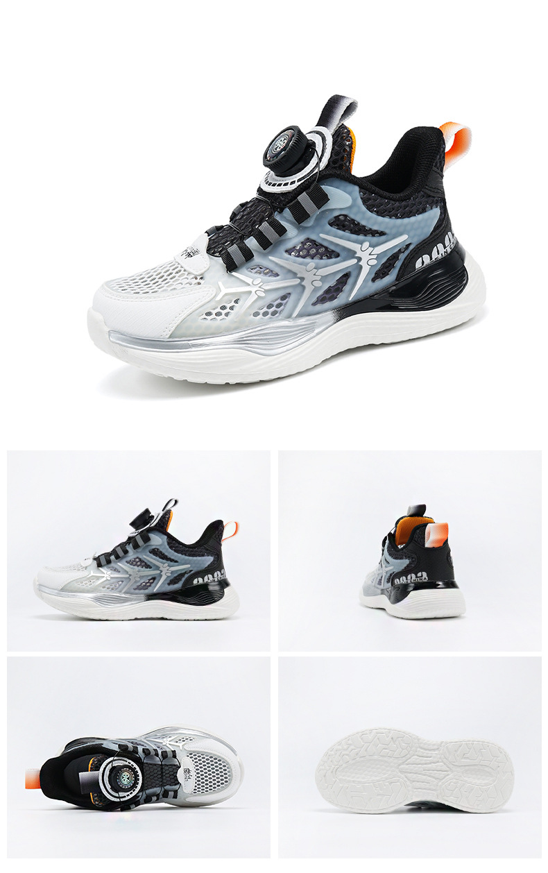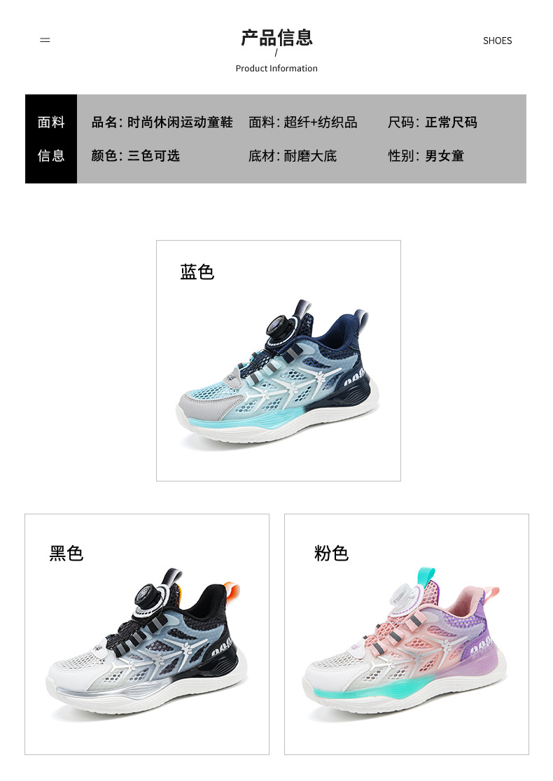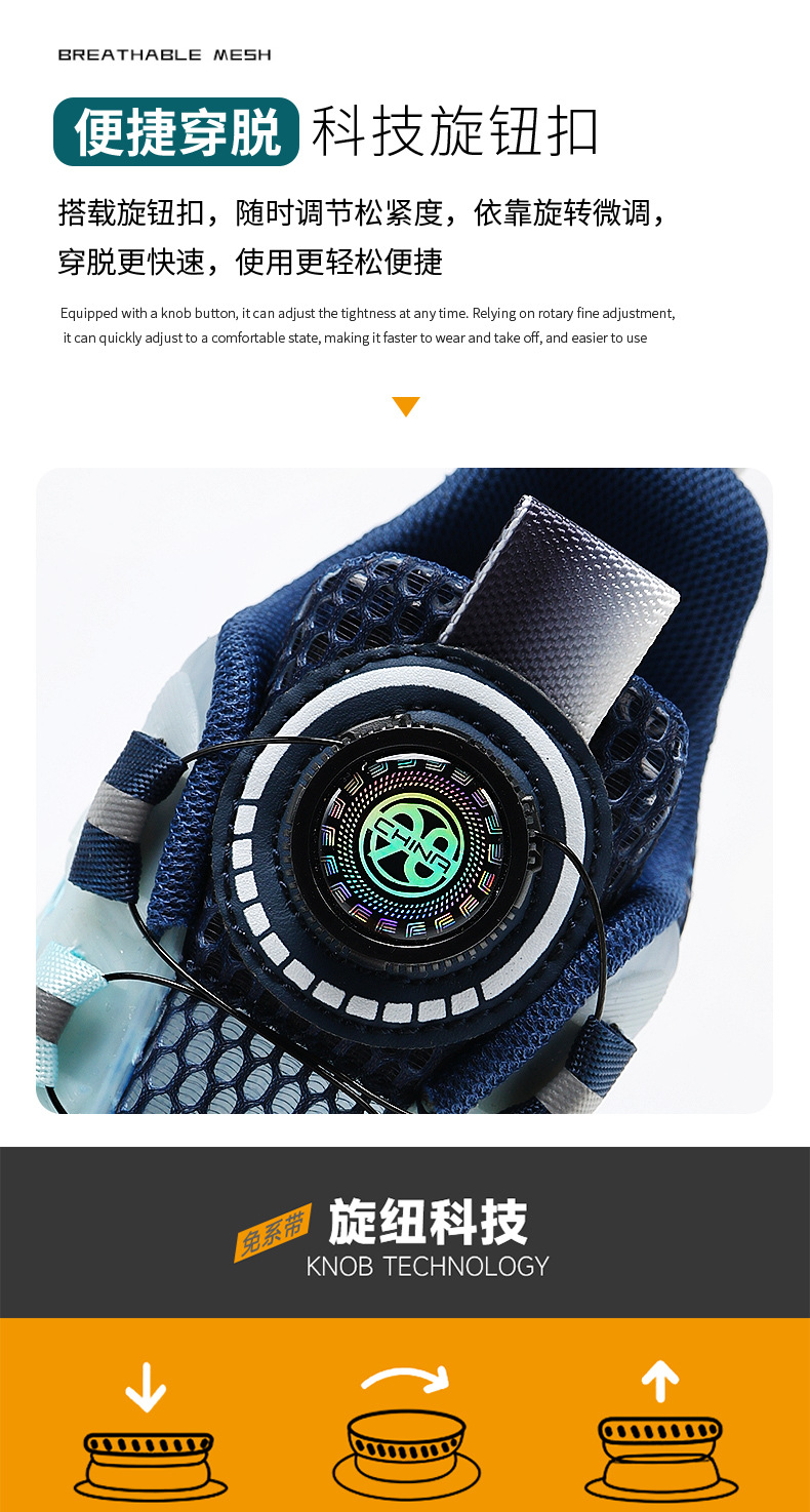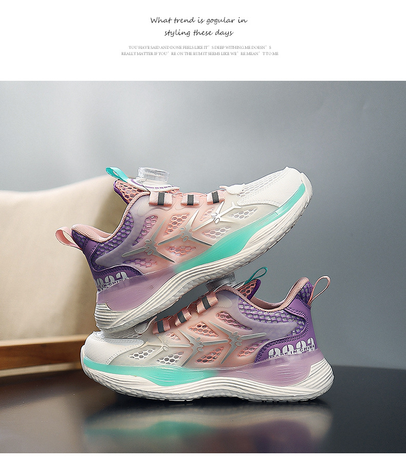 소년 신발 여름 메쉬 통기성 2025 새로운 어린이 스포츠 단일 메쉬 신발 큰 어린이를위한 부드러운 바닥 회전 버튼