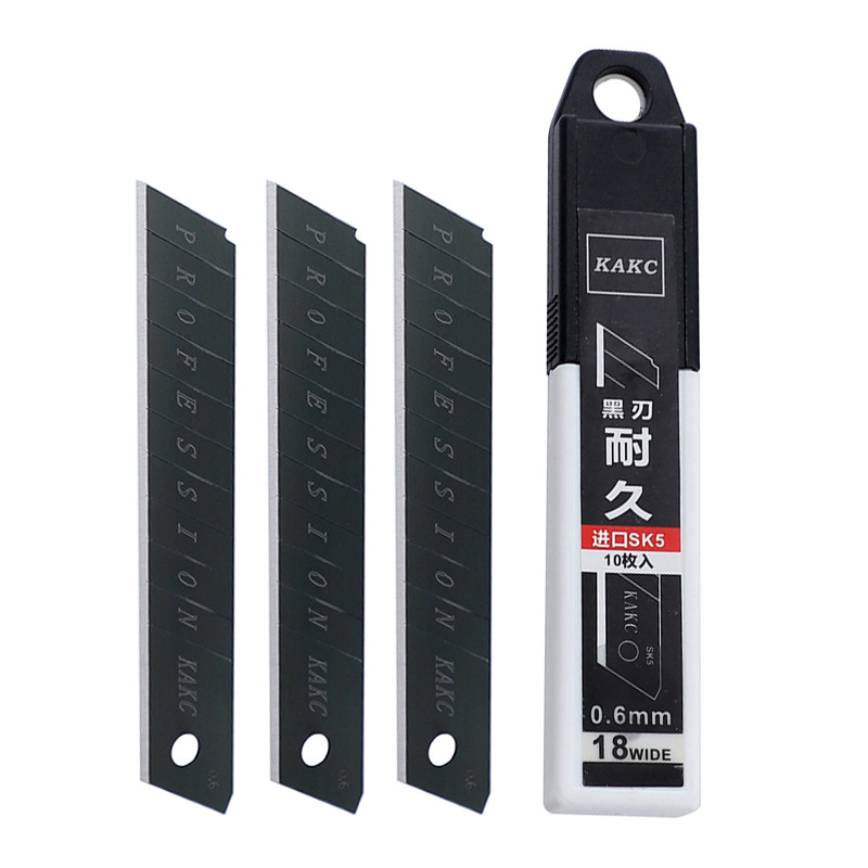 全黑美工刀片:发黑工艺阻挡了氧气与钢材的接触。采用进口SK5高碳钢从而提供了刀片的抗腐蚀性 防锈。切割锋利 不留毛边 裁切更广。
