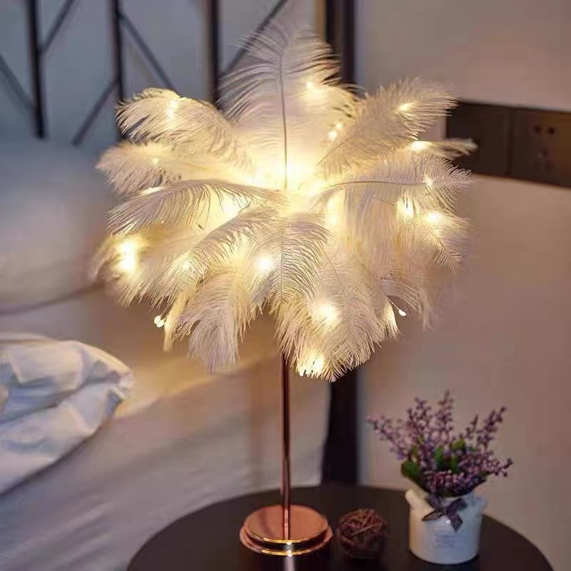공장 직접 판매 빛 고급 창조적 인 책상 램프 바람 깃털 램프 나이트 라이트 거실 침실 장식 램프 크리스마스 램프