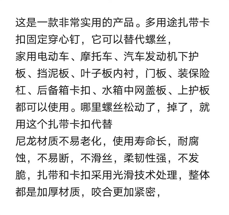 나일론 유니버설 케이블 타이 버클 펜더 펜더 라이닝