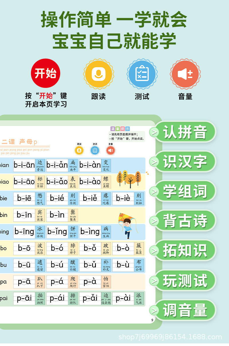 1학년 병음 철자 훈련 유물, 유아 및 어린이를 위한 조기 교육 학습 기계, 연결 포인트 독서 및 오디오 북 장난감스토어 가기