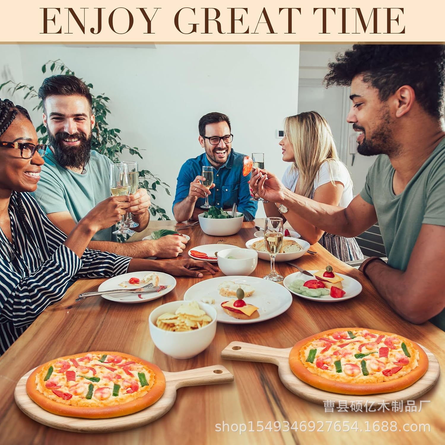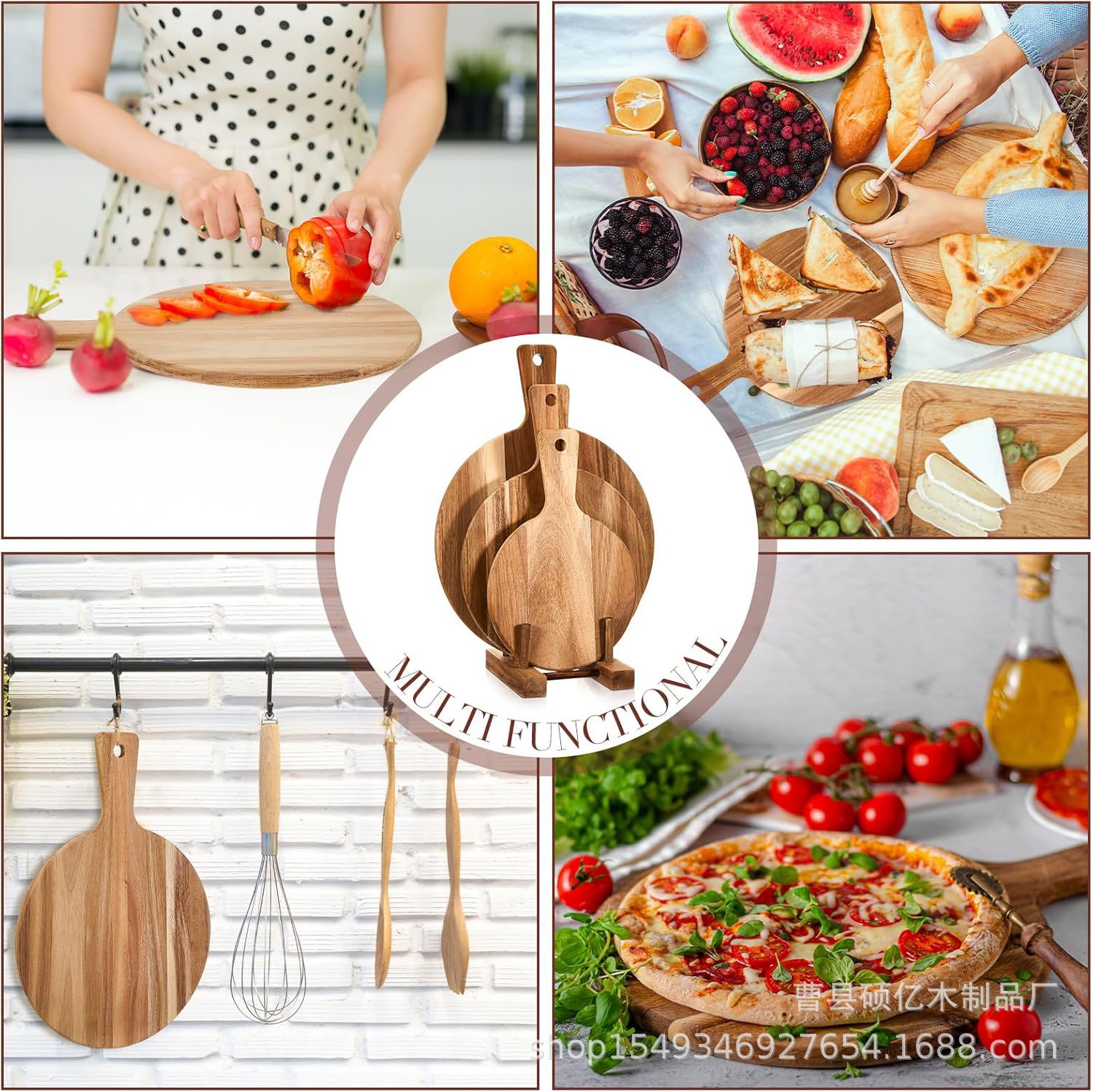 핸들 치즈 과일 빵 커팅 보드 멀티 사이즈 아카시아 나무 커팅 보드와 국경을 넘는 단단한 나무 피자 트레이 라운드스토어 가기