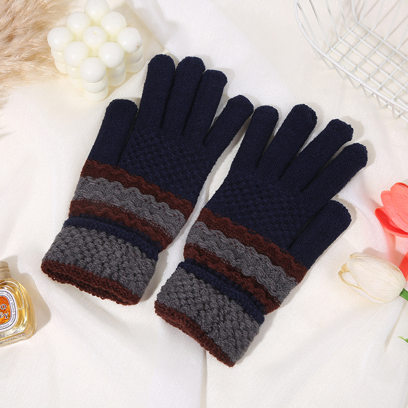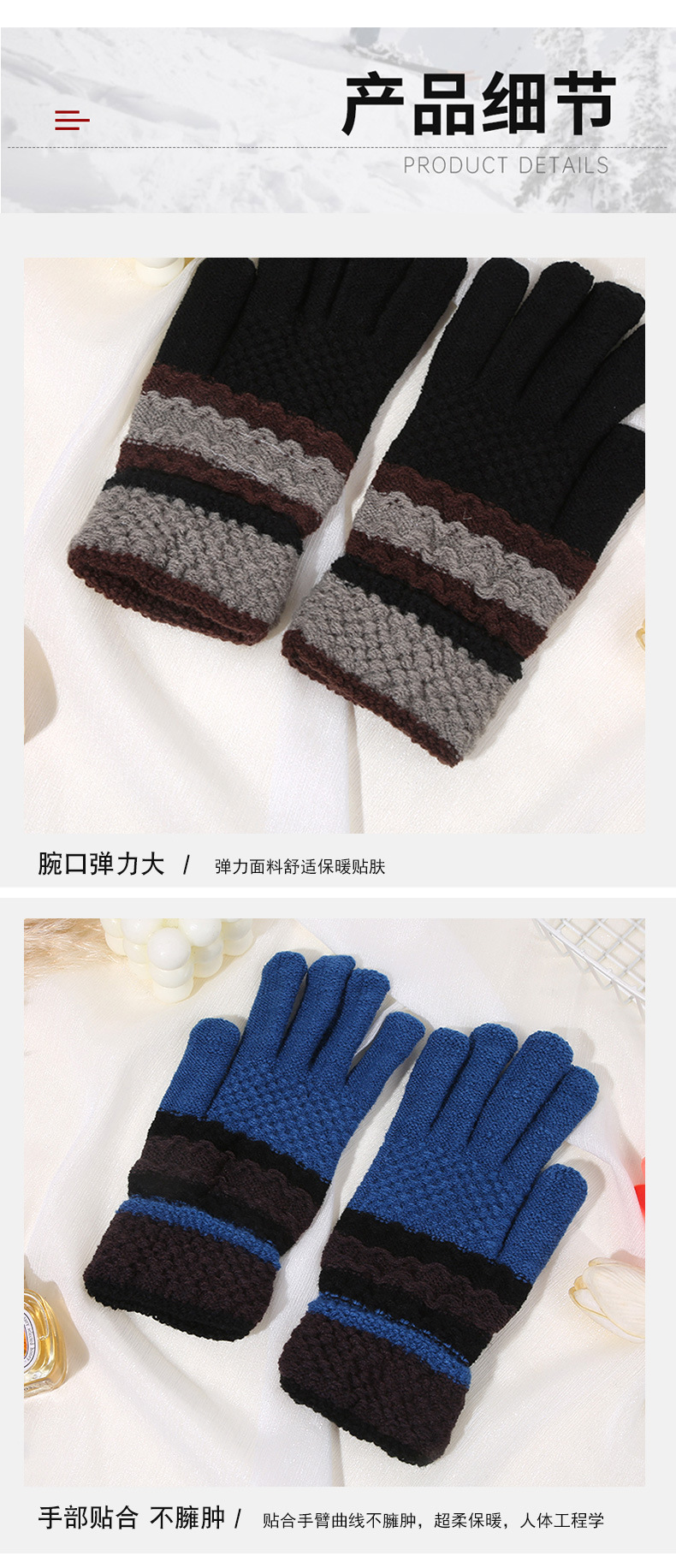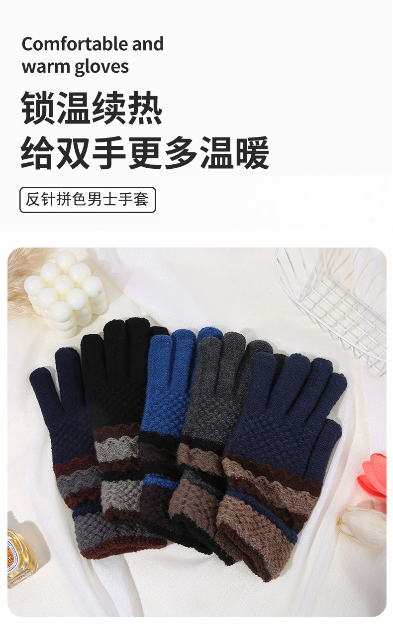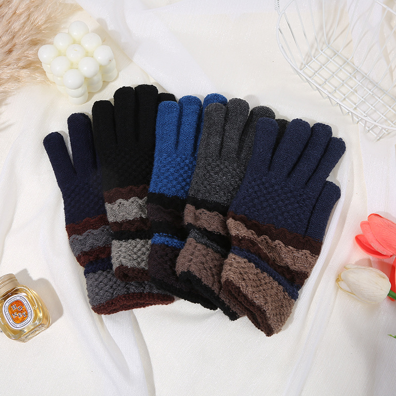 가을, 겨울 남성 따뜻한 장갑 야외 사이클링 플러스 벨벳 역 바늘 컬러 블록 니트 장갑 방한 다섯 손가락 장갑 도매