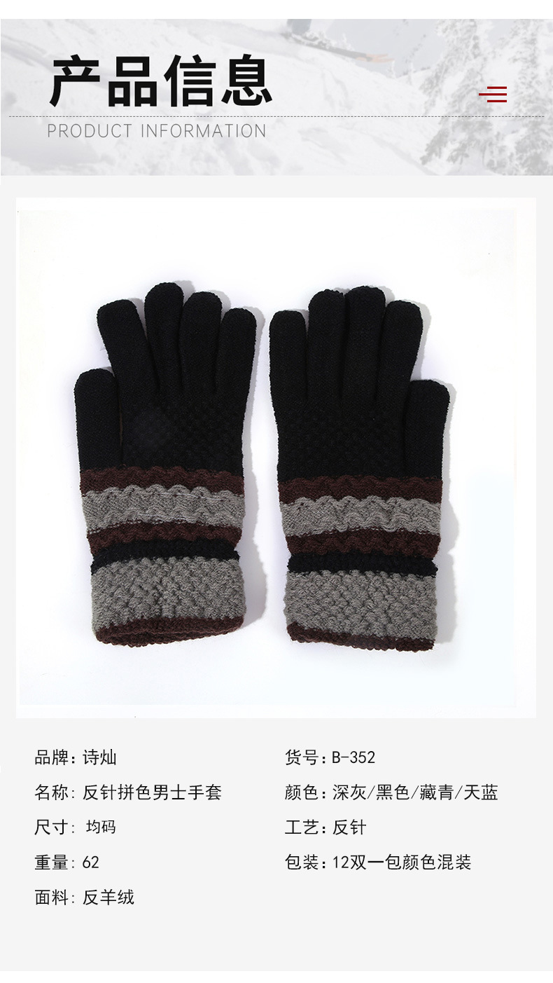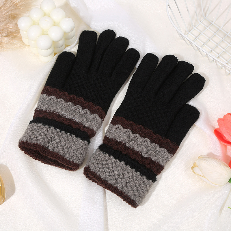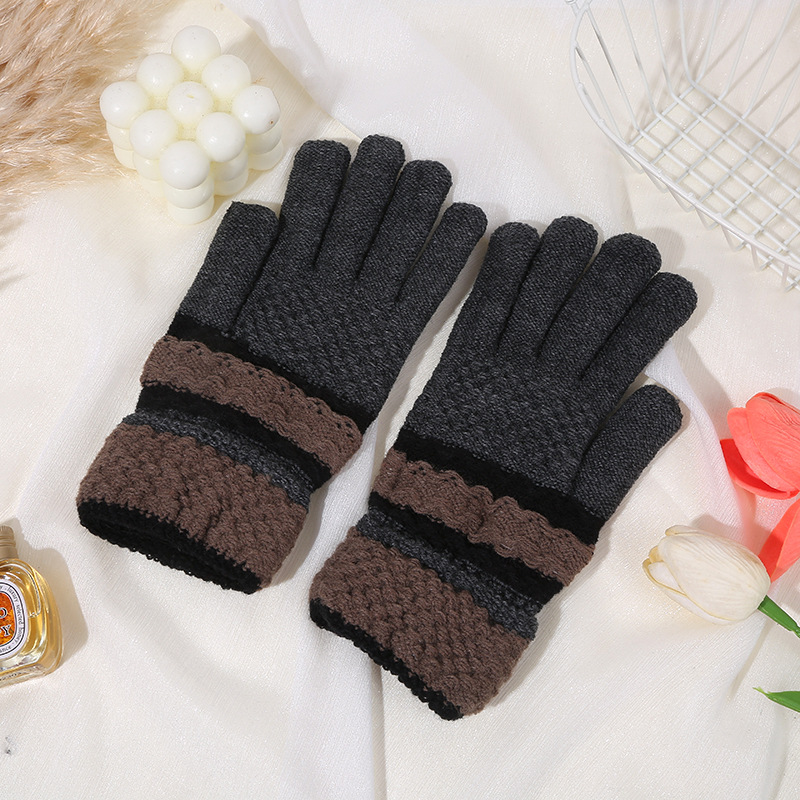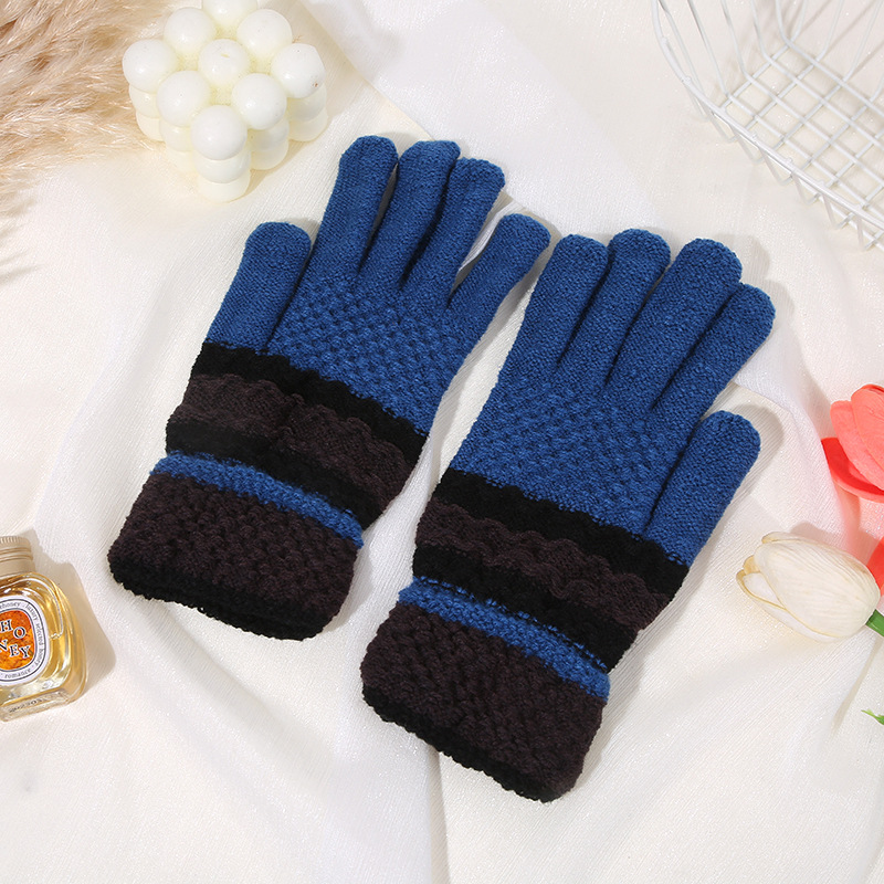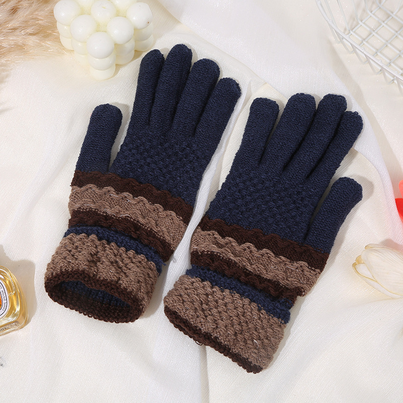 가을, 겨울 남성 따뜻한 장갑 야외 사이클링 플러스 벨벳 역 바늘 컬러 블록 니트 장갑 방한 다섯 손가락 장갑 도매