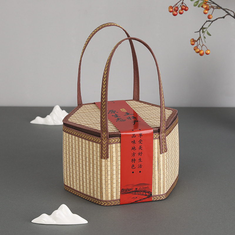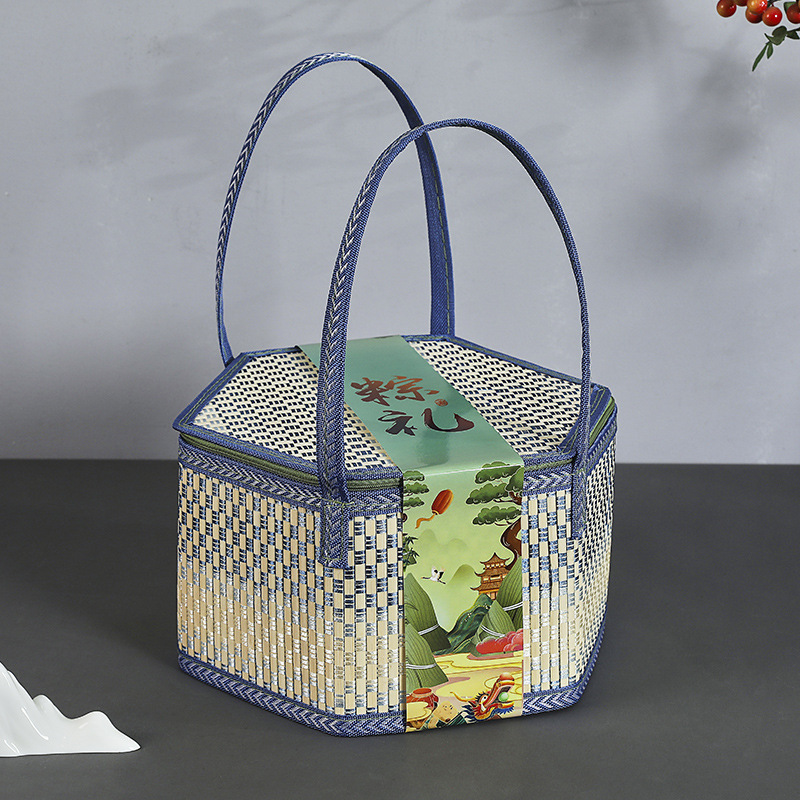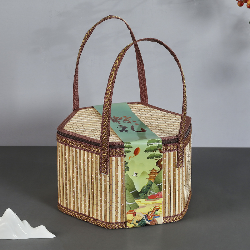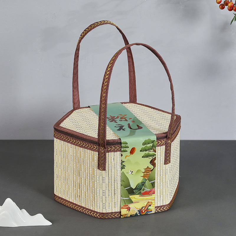 대나무 바구니 드래곤 보트 축제 쌀만두 포장 선물 빈 상자 새로운 선물 상자 외부 포장 휴대용 창의적인 사용자 정의 없음스토어 가기