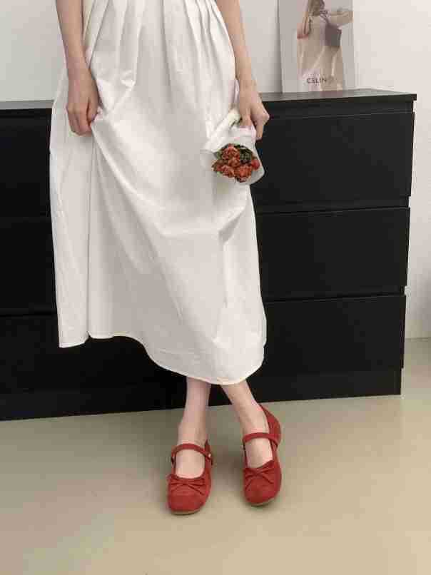 부드러운 요정 스타일 메리 제인 신발 2025 봄 프렌치 스타일 우아한 나비 매듭 얕은 입 안쪽 높이 증가 신발스토어 가기