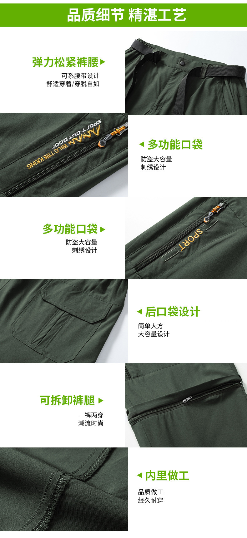 남성용 야외 탄성 속건성 바지, 탈착식 2섹션, 반팔, 통기성, 얇은, 충전 바지, 등산, 새로운 스타일