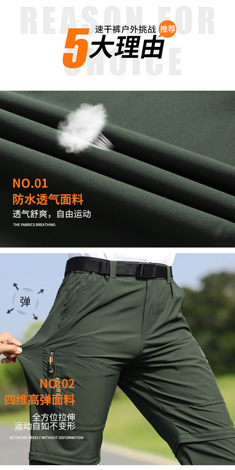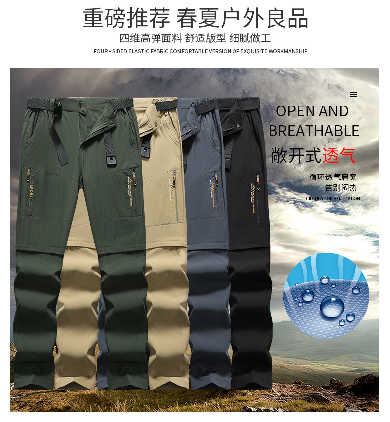 남성용 야외 탄성 속건성 바지, 탈착식 2섹션, 반팔, 통기성, 얇은, 충전 바지, 등산, 새로운 스타일스토어 가기