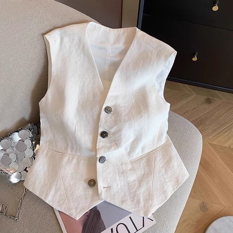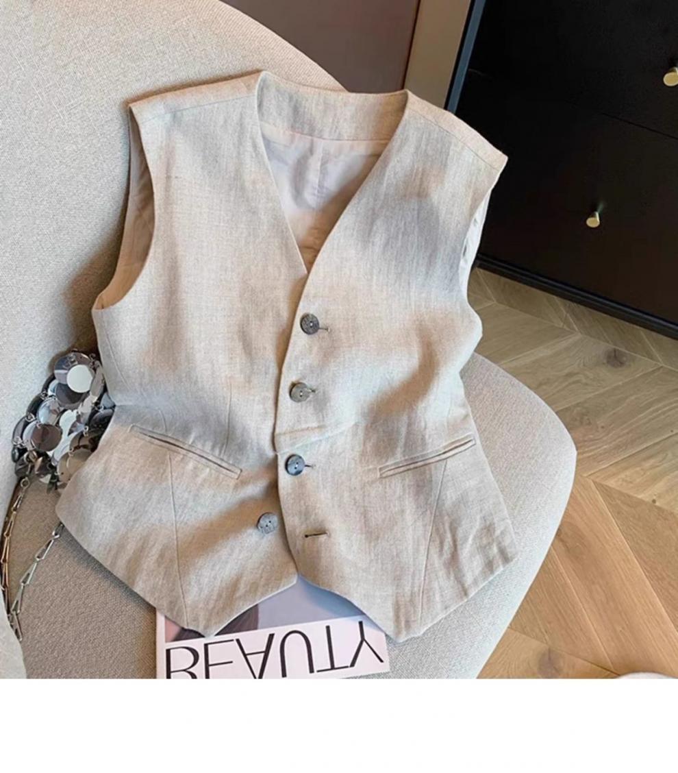광저우 13라인 고급 인기상품~리넨 없이는 여름이 아니다, 올드머니 스타일 레이어드 리넨 수트조끼 여성 아우터스토어 가기