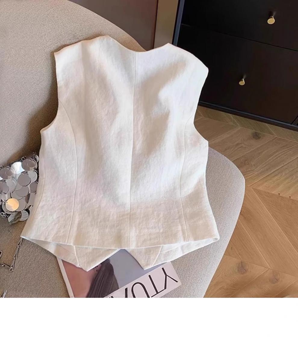 광저우 13라인 고급 인기상품~리넨 없이는 여름이 아니다, 올드머니 스타일 레이어드 리넨 수트조끼 여성 아우터