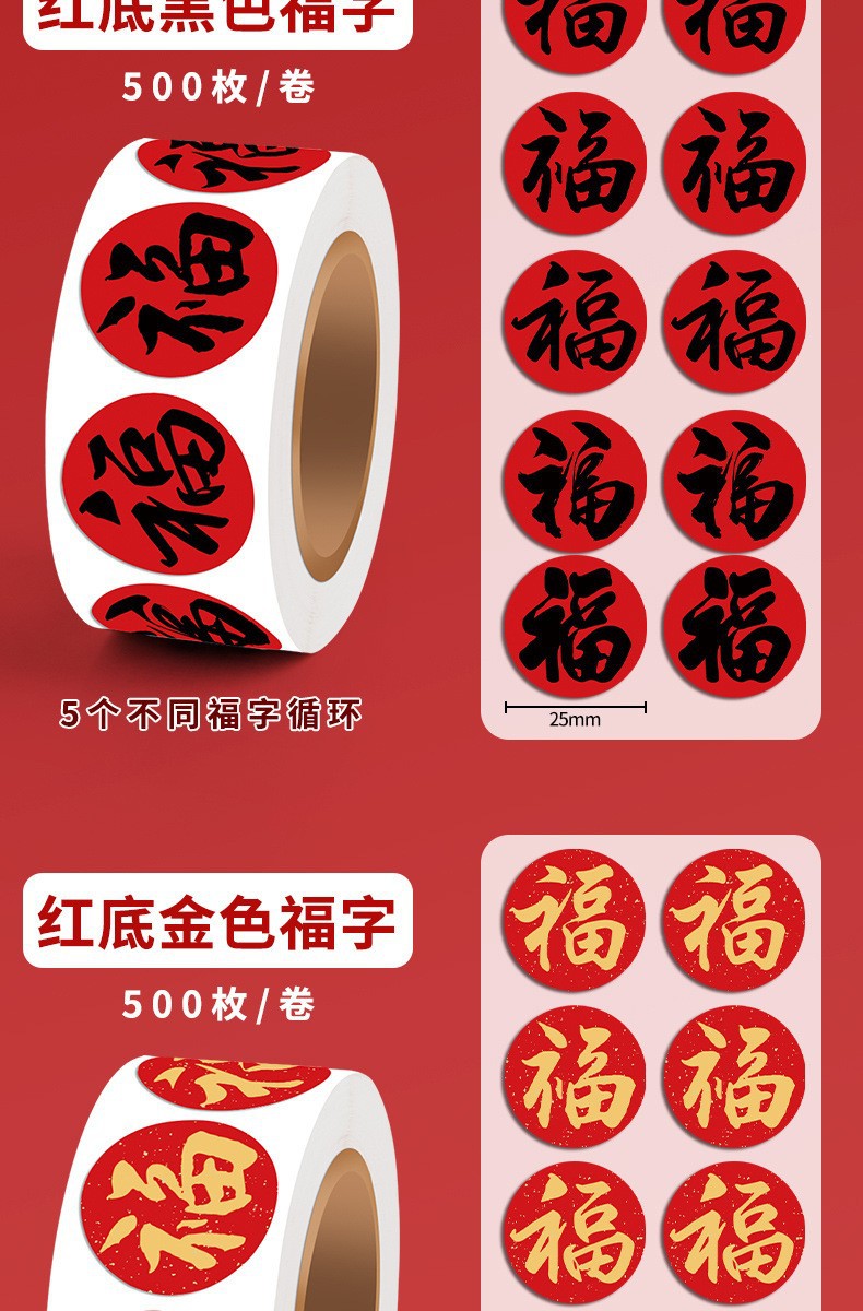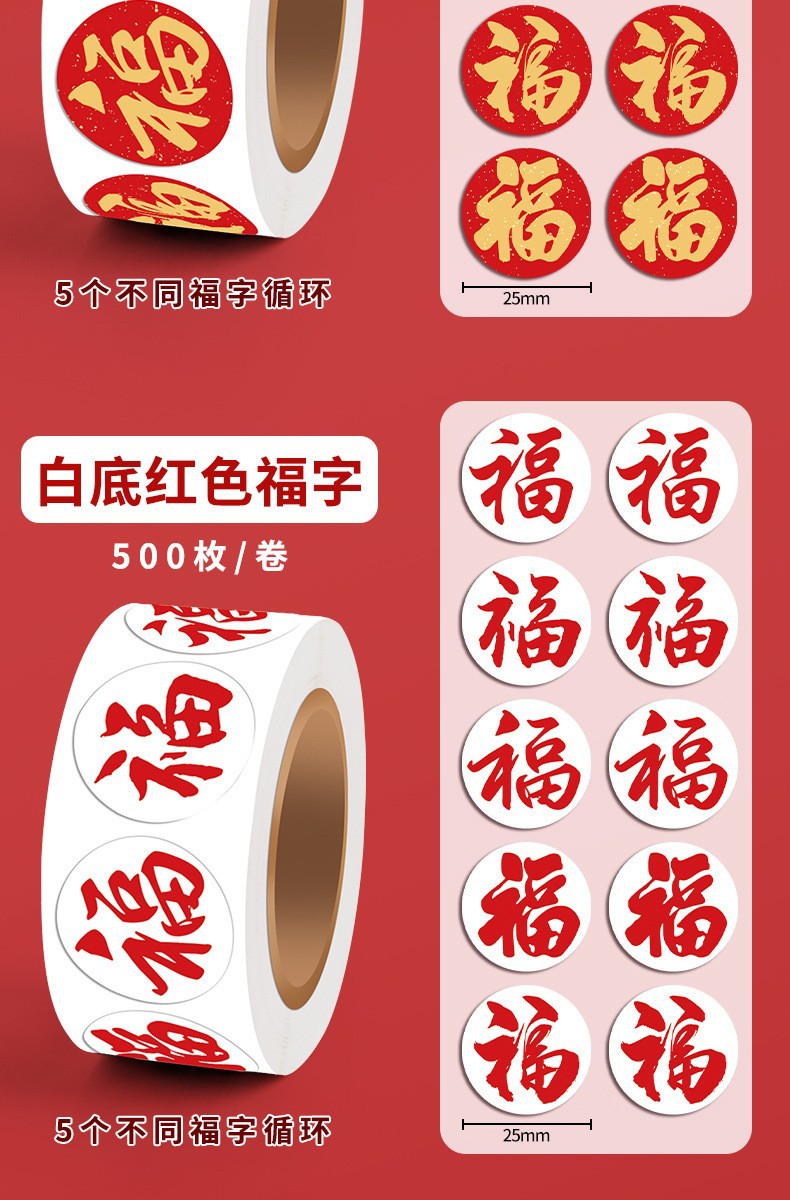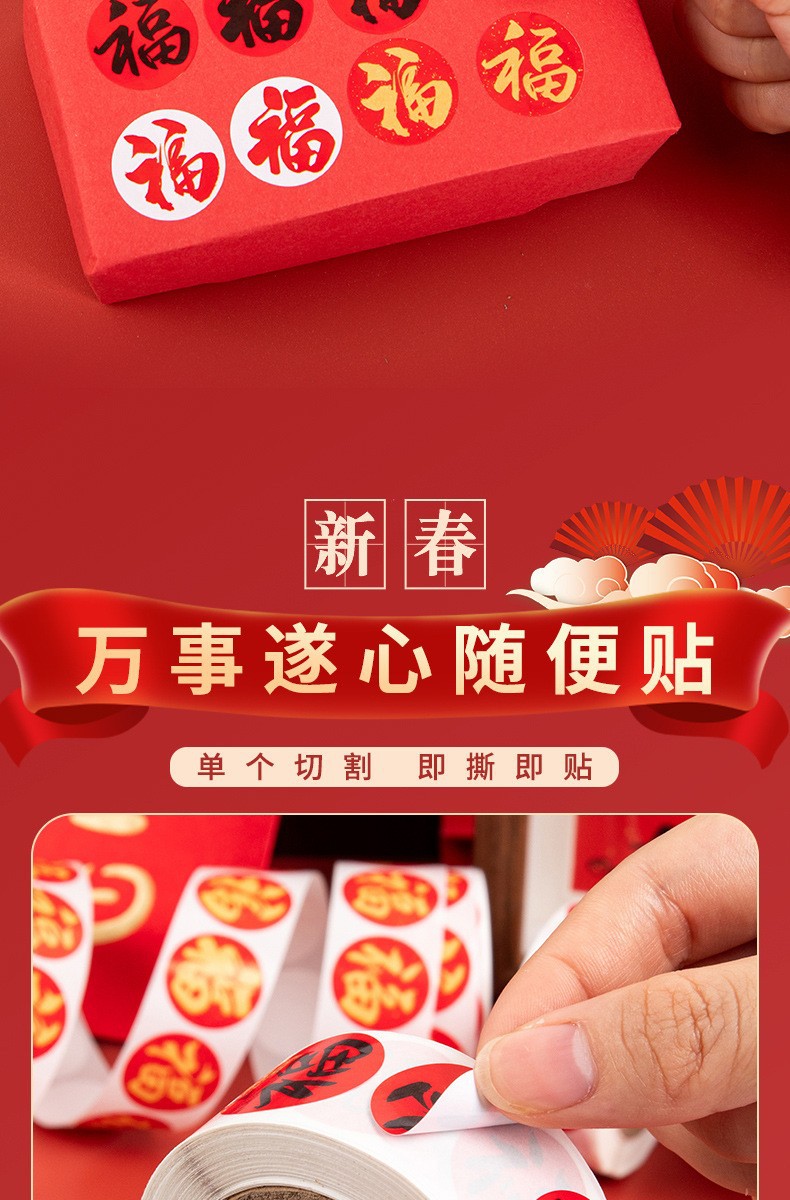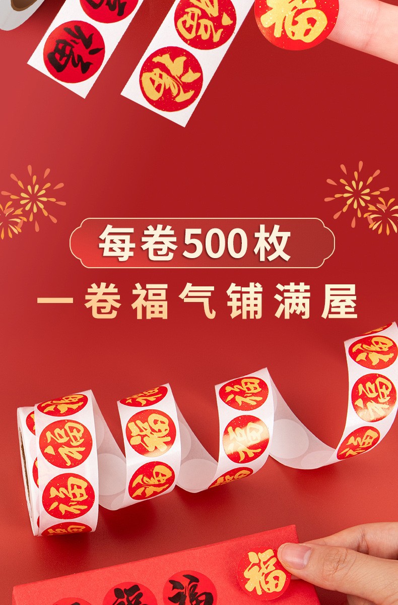 Fu Zi 페이스트 새해 축복 선물 레드 봉투 밀봉 붙여 넣기 장식 스티커 골드 새해 스티커 접착 밀봉 페이스트스토어 가기