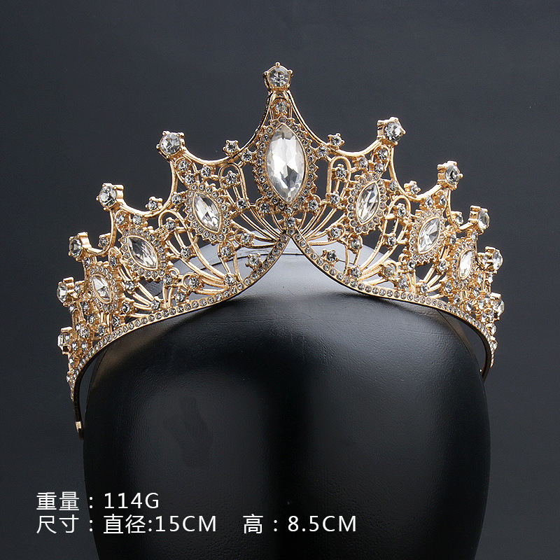 크라운 티아라 새로운 라인 석 합금 대형 액세서리 분위기있는 웨딩 드레스 스타일 헤어 액세서리 골드 드레스 크라운 아마존
