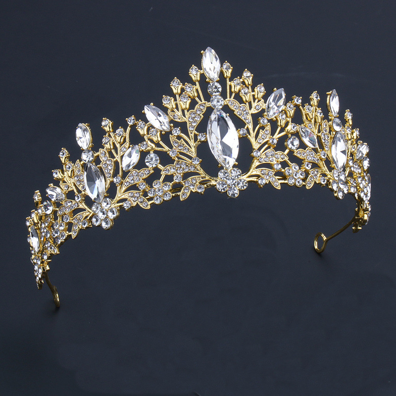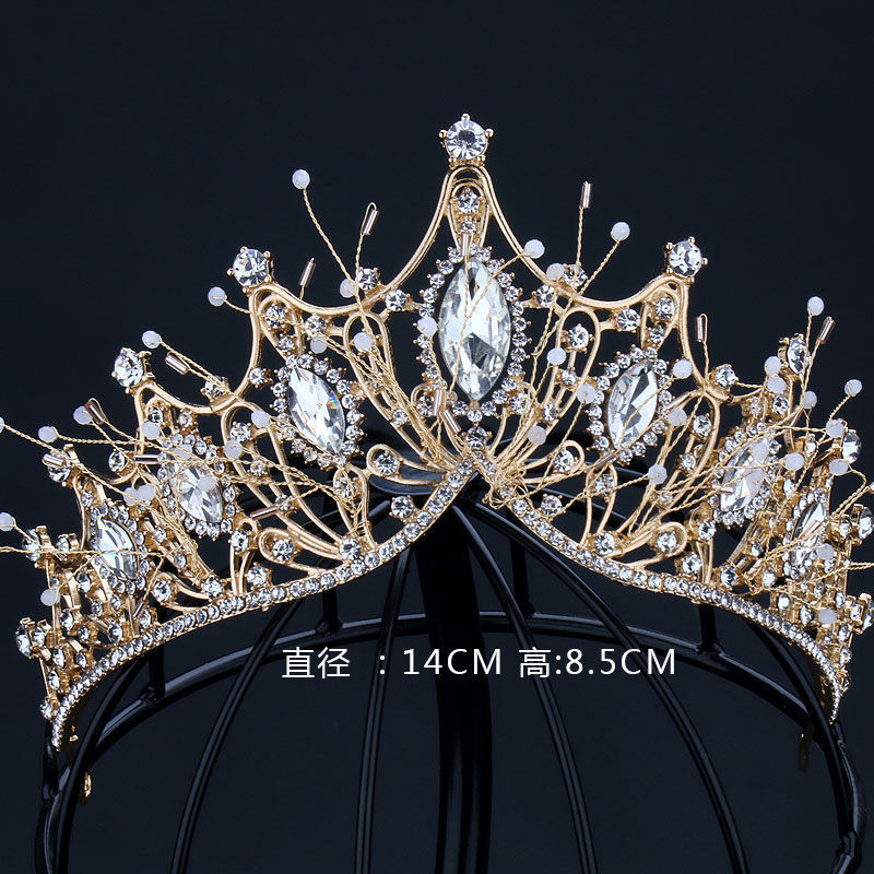 크라운 티아라 새로운 라인 석 합금 대형 액세서리 분위기있는 웨딩 드레스 스타일 헤어 액세서리 골드 드레스 크라운 아마존스토어 가기