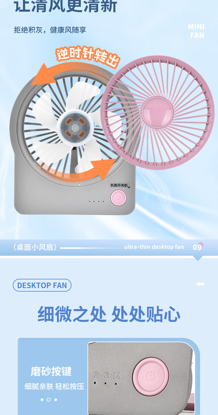 여름 초박형 데스크탑 소형 팬, 강풍, 걸이 및 스탠딩, 이중 목적, 휴대용, 기숙사, 사무실 및 학교에서 시원하게 유지하기에 가장 선호됩니다.