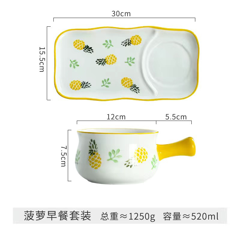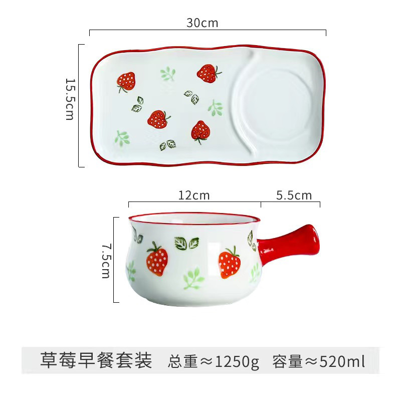 세트 일본식 핸들 세라믹 조식 그릇 및 요리 가정용 크리 에이 티브 딸기 샐러드 1 인 식기 요리