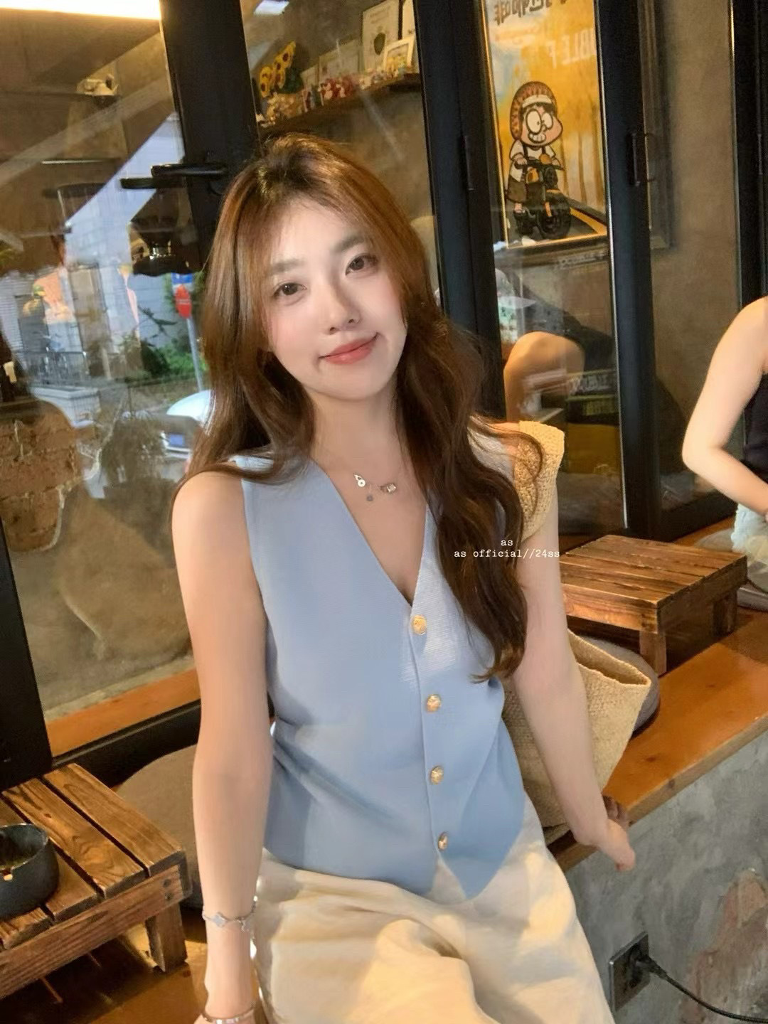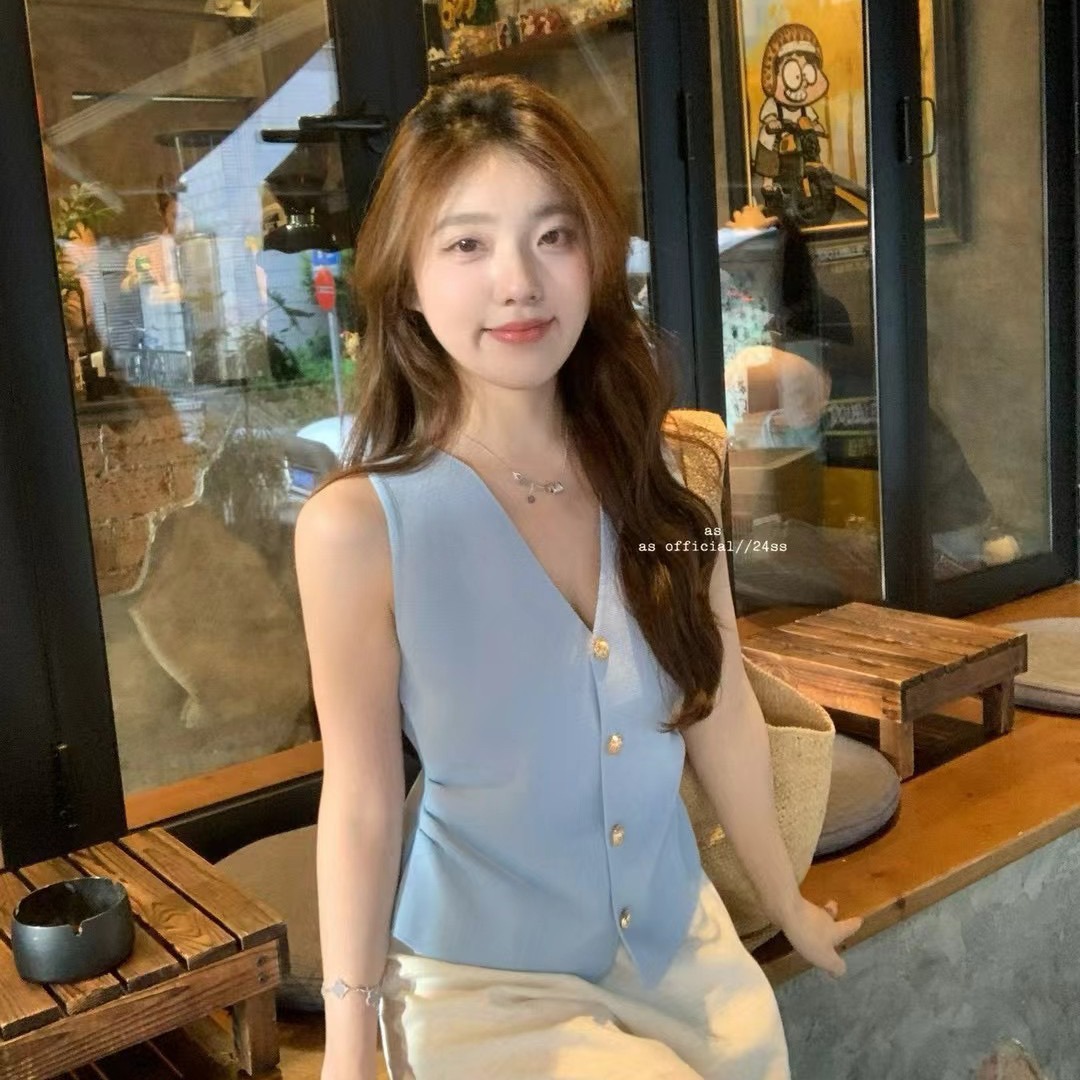 여름 아우터로 착용할 여성용 Xiaoxiangfeng 레드 브이넥 캐미솔, 독특하고 매우 멋진 슬림핏 민소매 조끼 탑스토어 가기