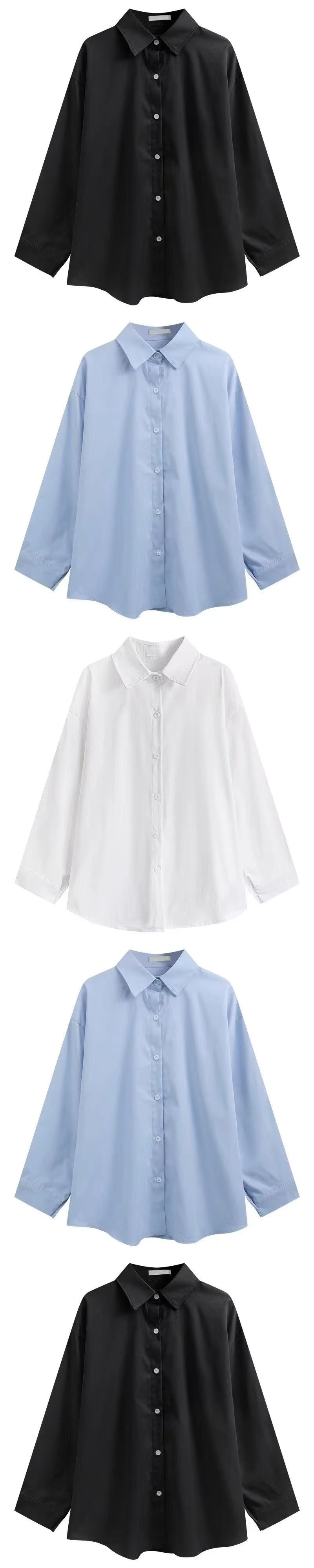 흰색 셔츠 여성 여름 긴팔 자외선 차단 재킷 봄, 가을 루즈한 블루 이너 셔츠 레이어드 하이엔드 탑