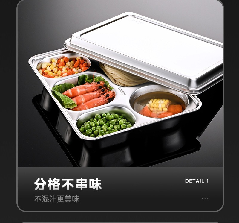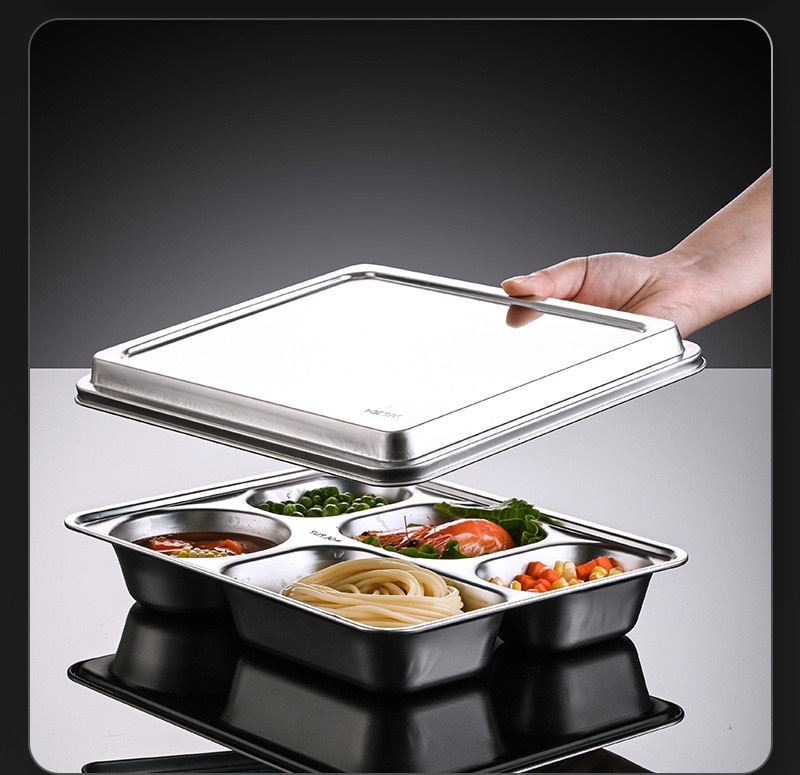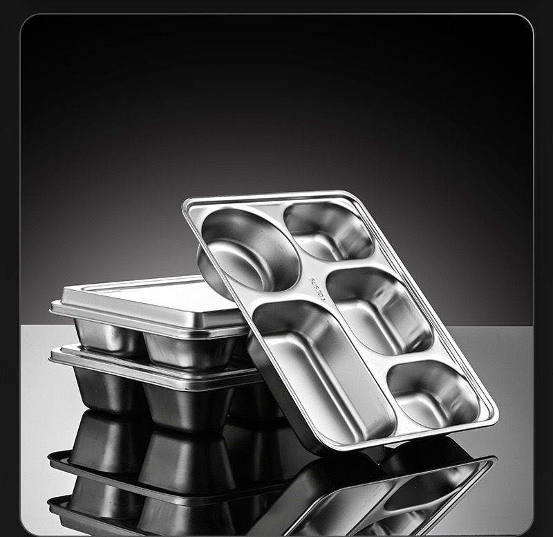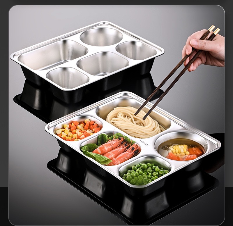 인도네시아 인기 판매 상품 304 스테인리스 분할 접시 5칸 도시락 접시 식당 트레이