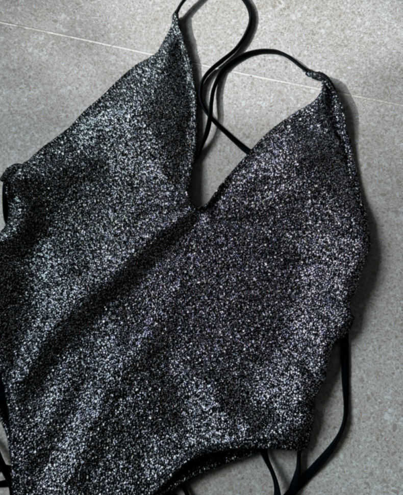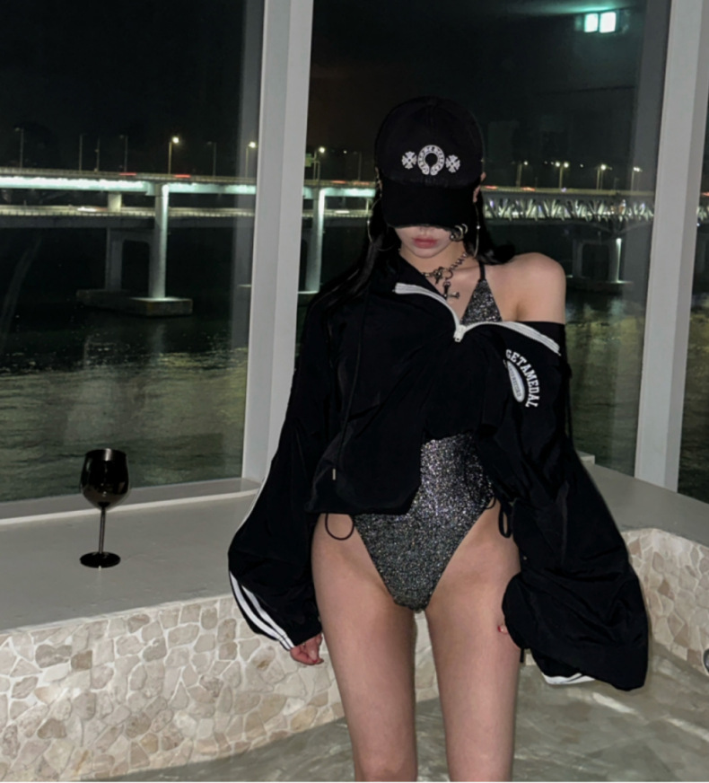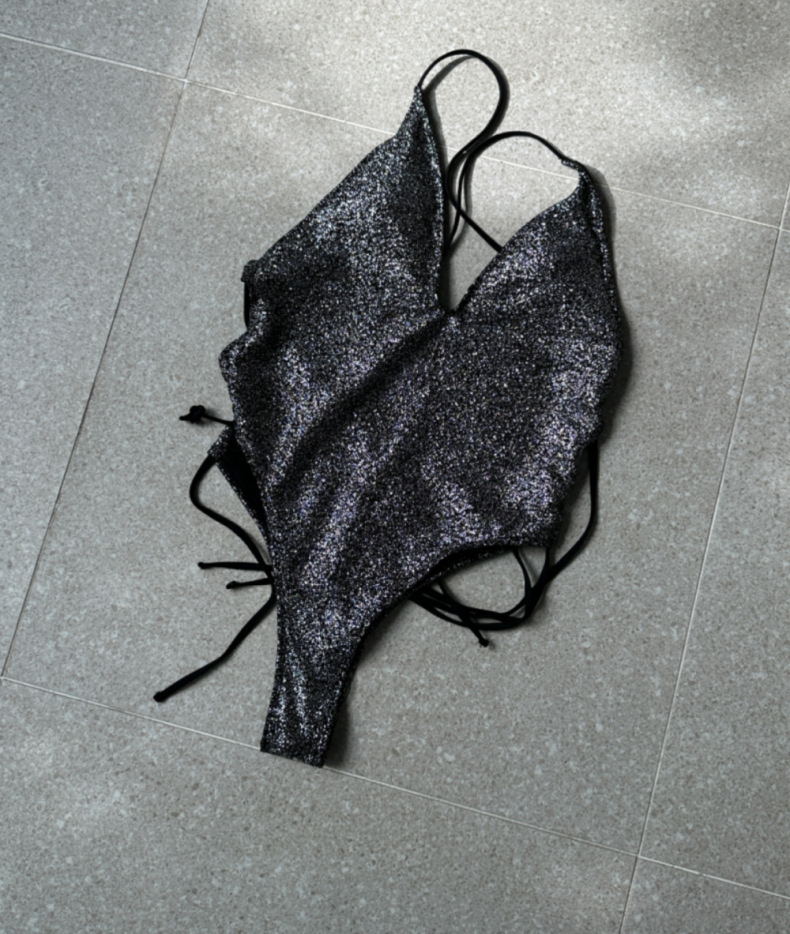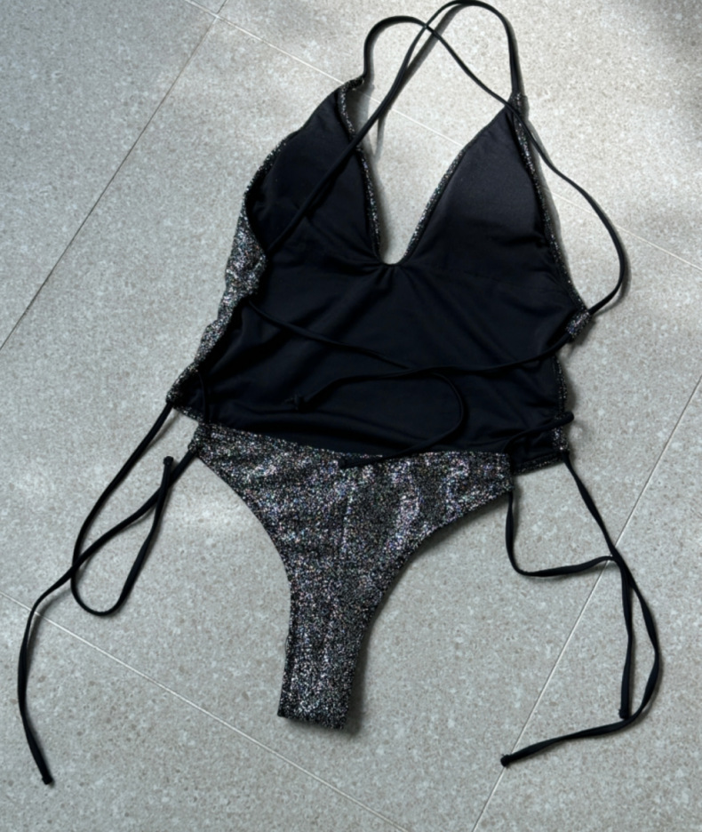유럽과 미국의 섹시한 스파이스 소녀 블랙 브라이트 플래시 비키니 하이 포크 V-Neck 스트랩 백리스 작은 가슴 휴가 수영복 여성용스토어 가기