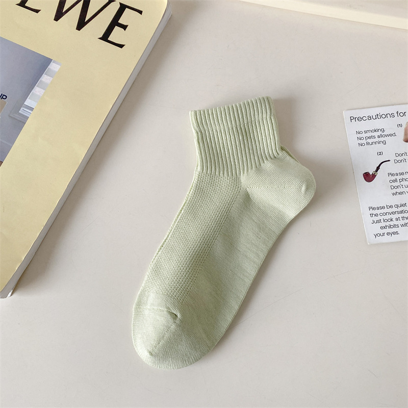 2025 새로운 스타일 양말 여성 봄과 여름 솔리드 컬러 한국인시 스타일 코튼 통기성 땀 흡수 여성용 수놓은 짧은 튜브 보트 양말스토어 가기