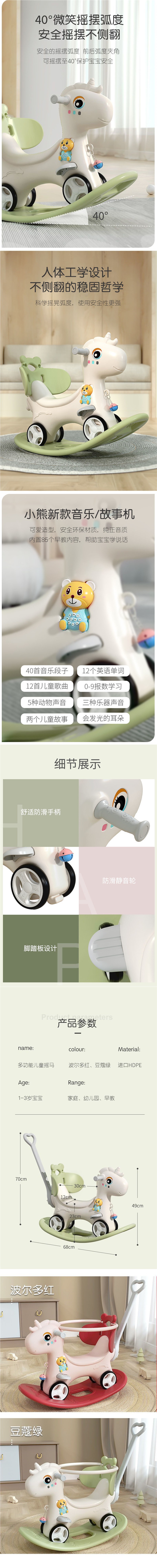 로킹 말 트로이 목마 어린이 흔들 말 아기 2 대 1 세 생일 선물 여성용스토어 가기
