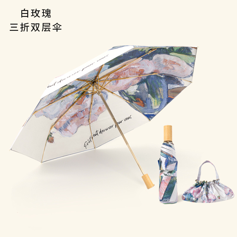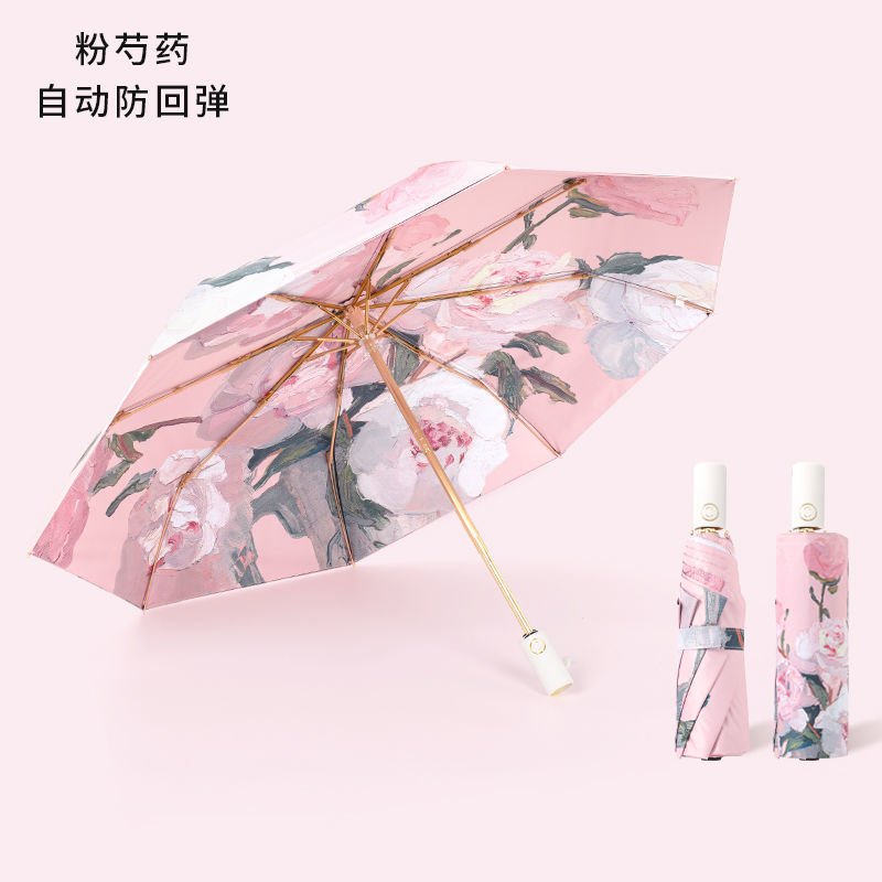 우산 자동 지식 더블 레이어 양면 인쇄 태양 우산 안티-UV 여성의 여름 맑고 비 이중 사용 접이식 자동 머리
