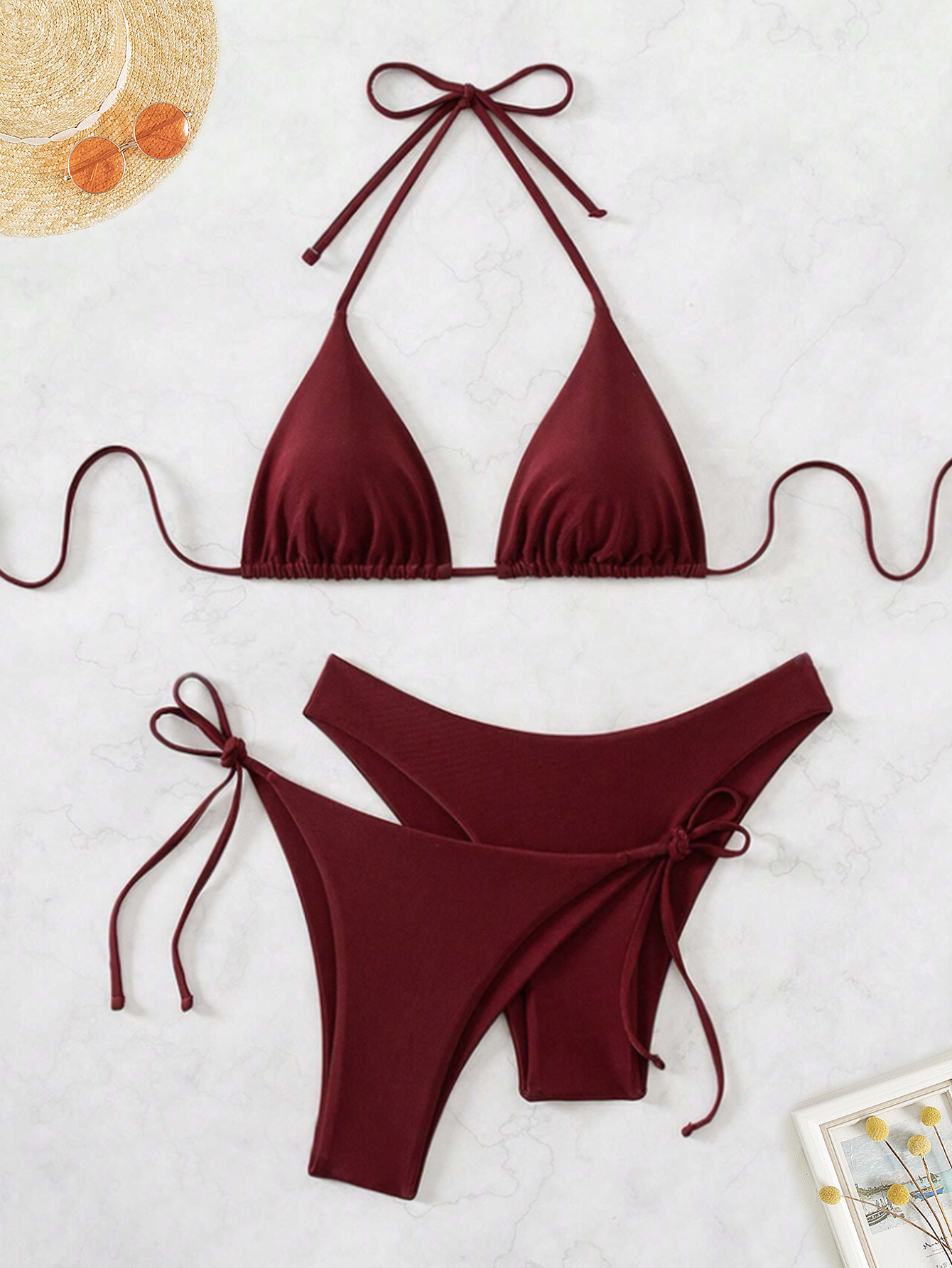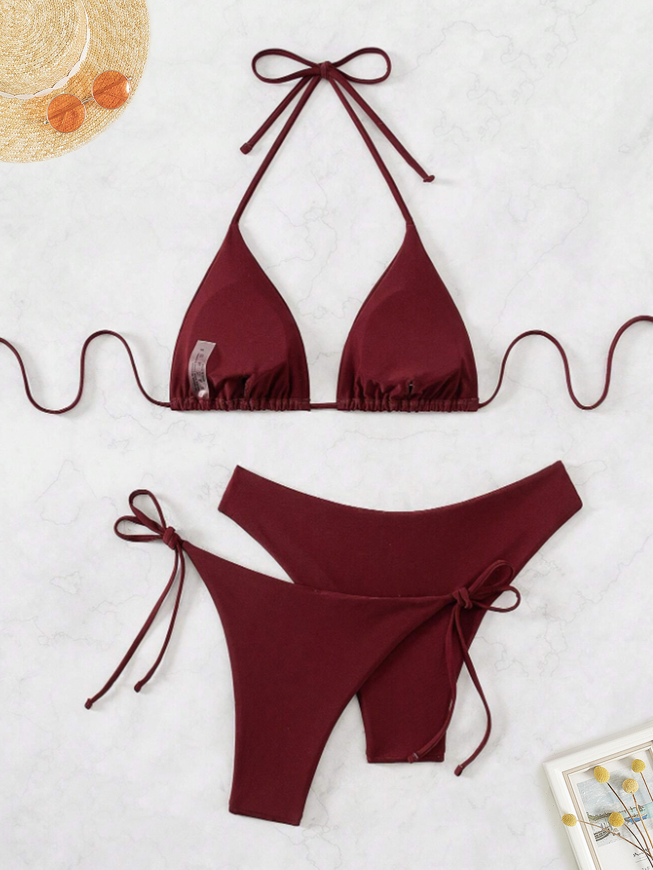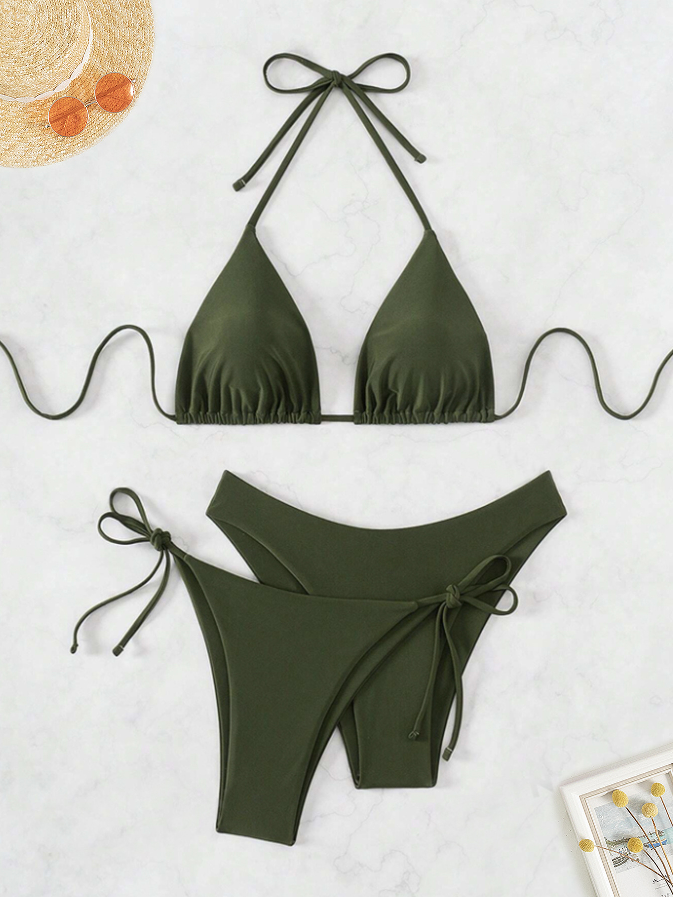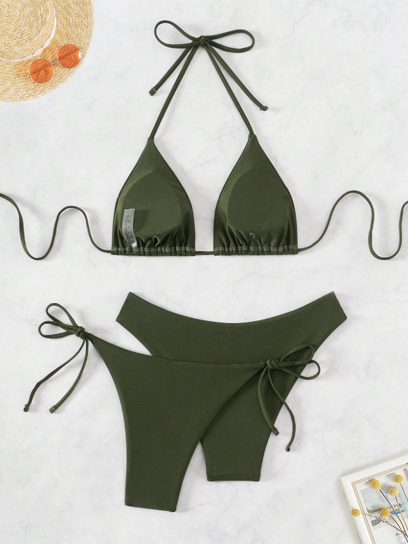 새로운 유럽과 미국의 대외 무역 여성 수영복 단색 목 교수형 테더 삼각형 가방 비키니 분할 3 피스 비키니