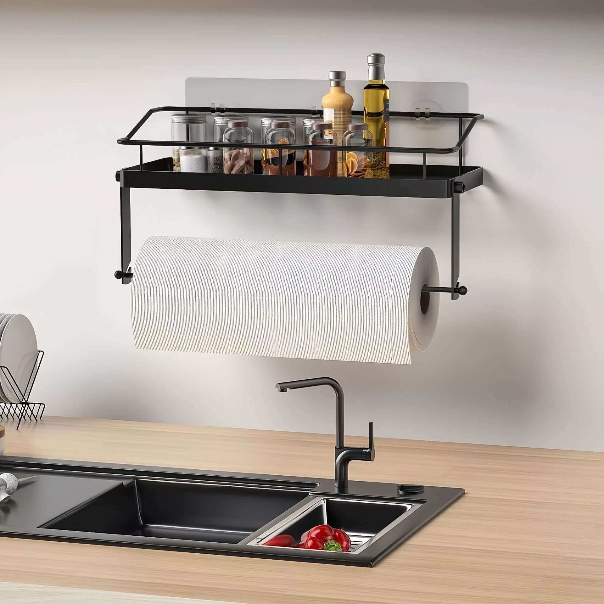 무타공 주방 위생용 접착식 스테인리스 수납선반 티슈홀더 수납랙 블랙 신제품