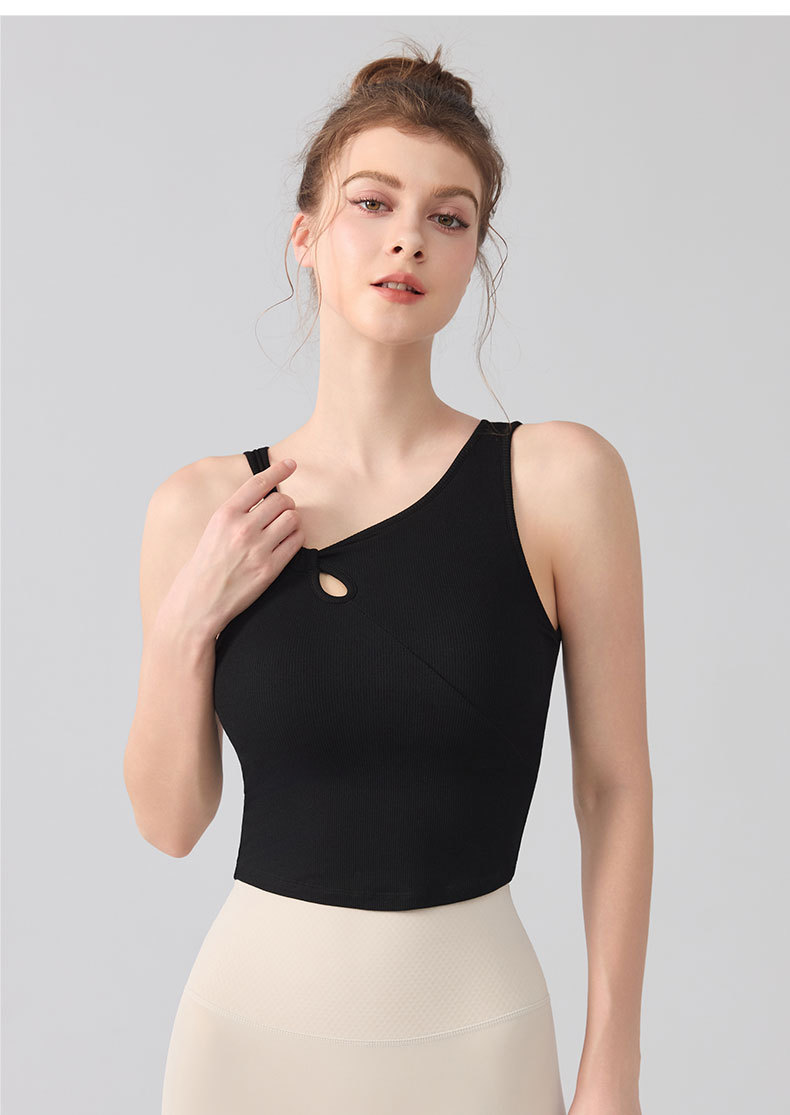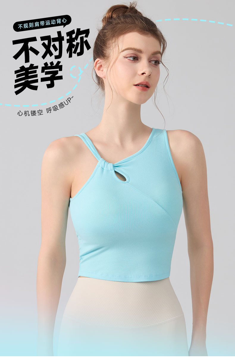 가슴 패드가있는 여성용 크로스 보더 유럽 및 미국 패션 슬로프 숄더 조끼 요가웨어 피트니스 속옷 브라 러닝 스포츠 브라