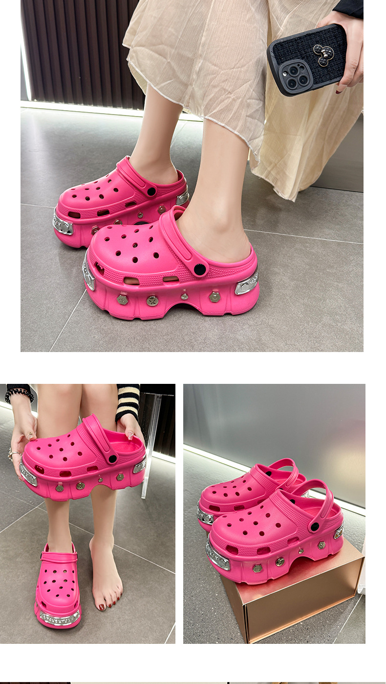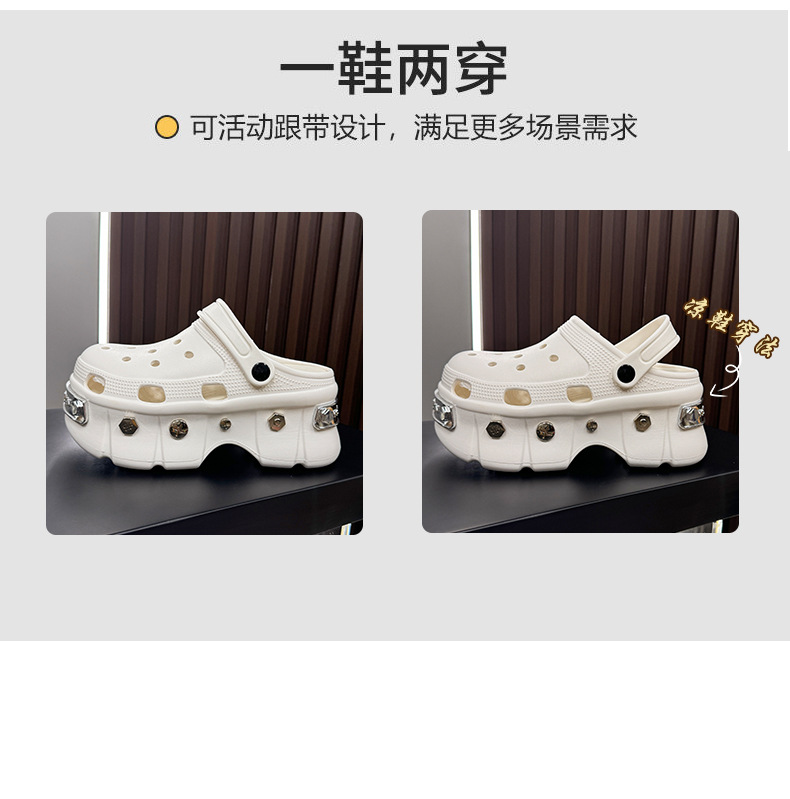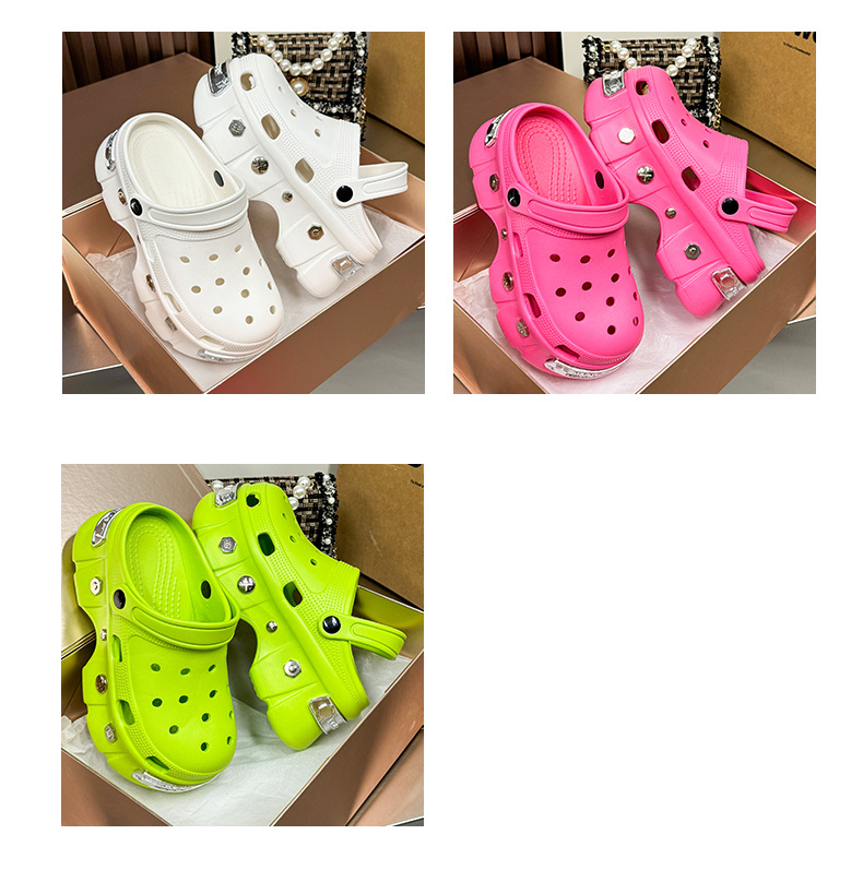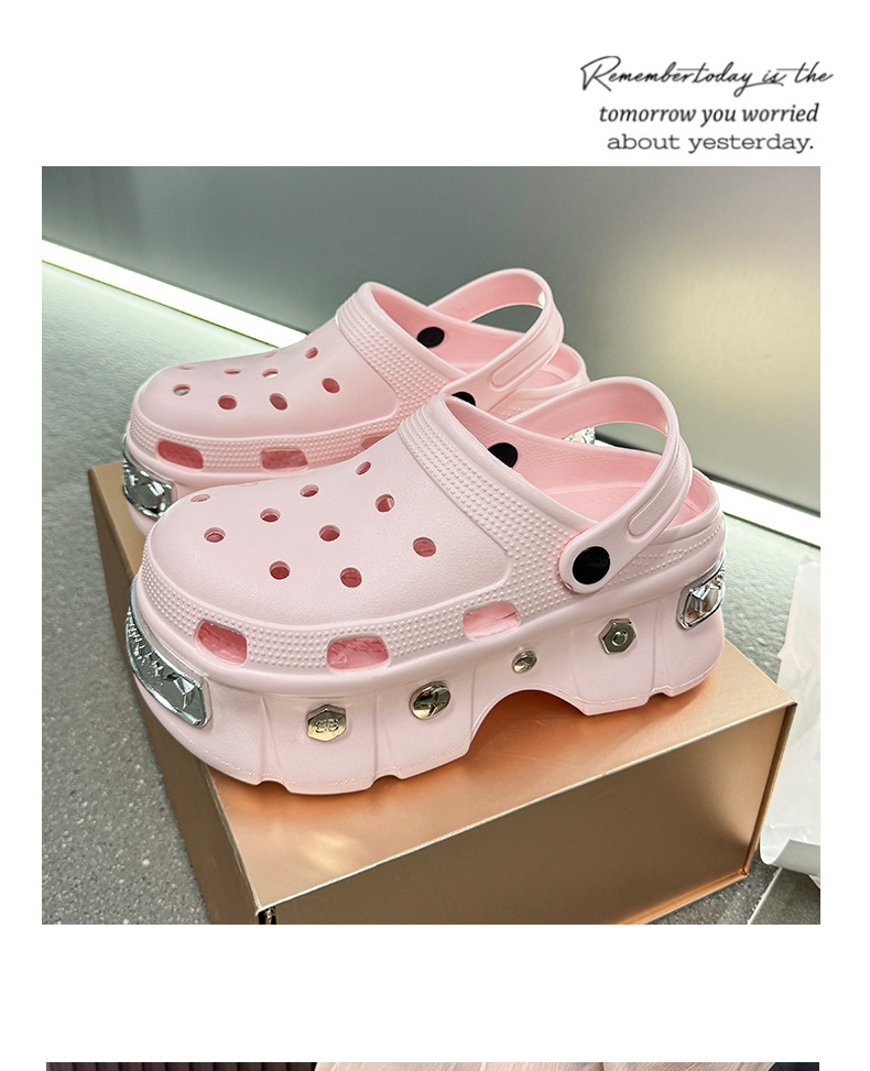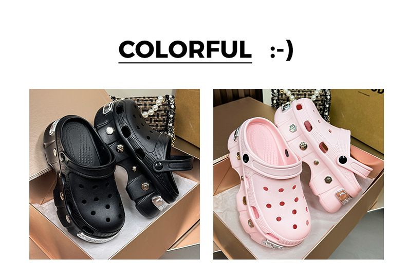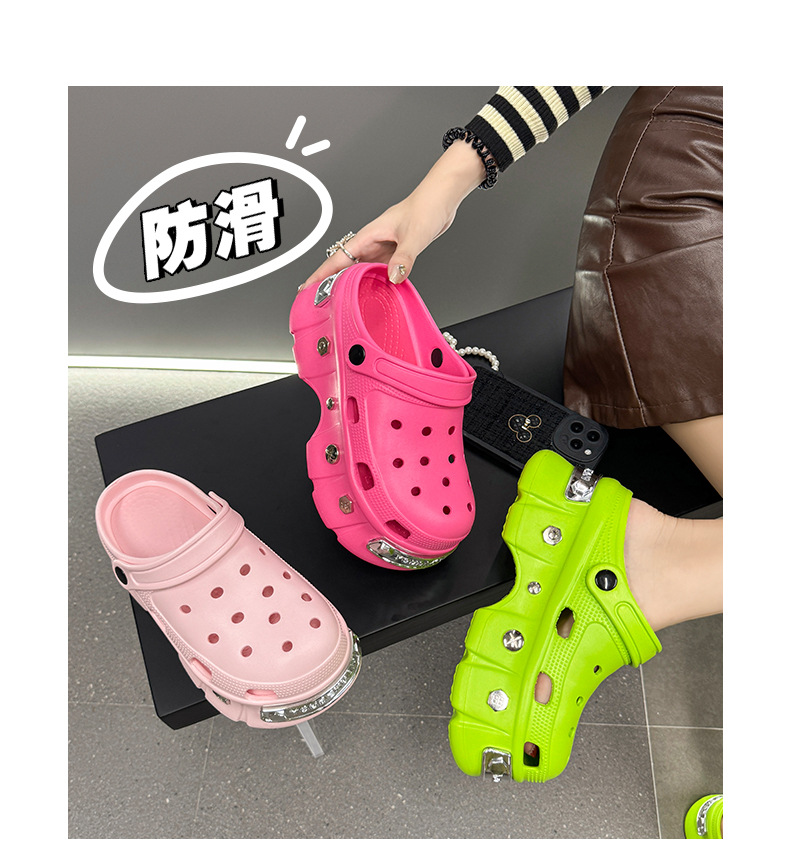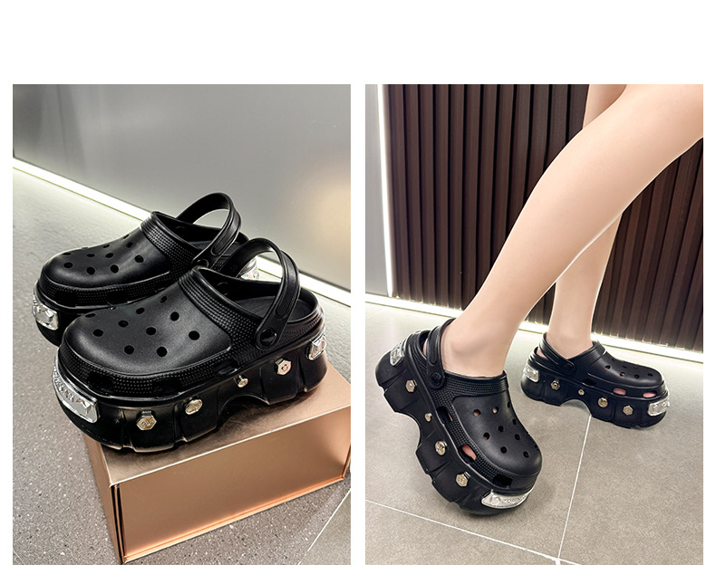 파리의 새로운 여성용 나막신 에바 펑크 스타일 두꺼운 밑창 금속 리벳 패션 슬리퍼 발가락 샌들