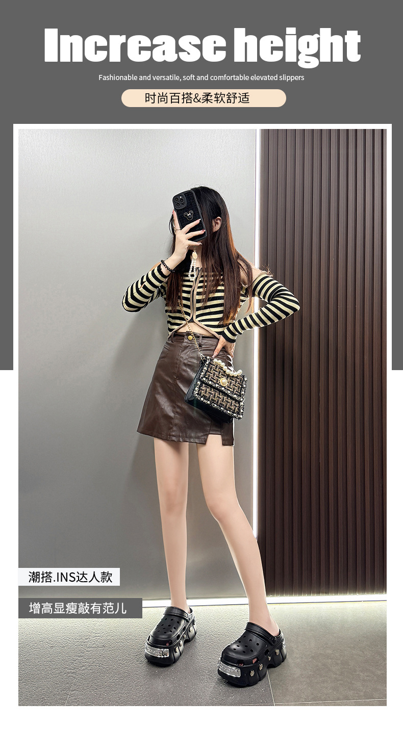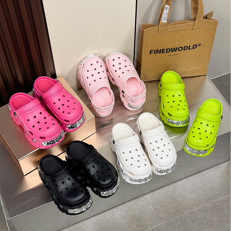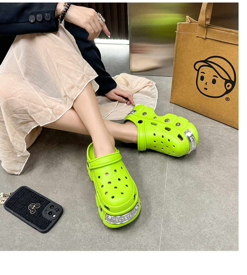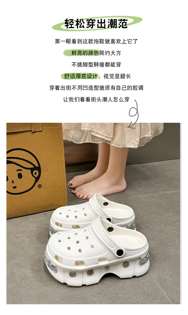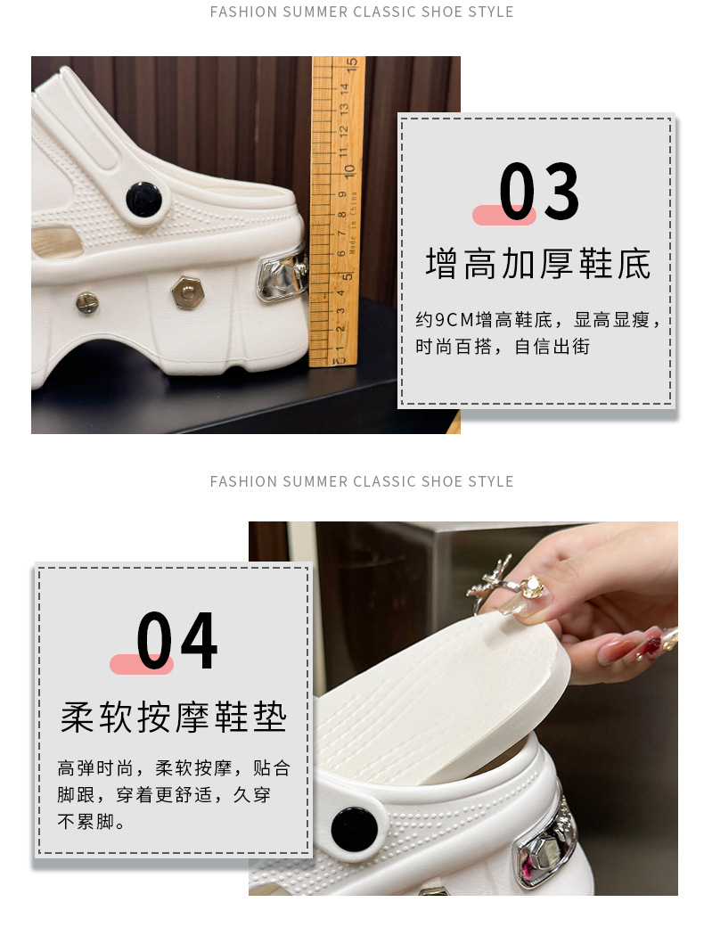 파리의 새로운 여성용 나막신 에바 펑크 스타일 두꺼운 밑창 금속 리벳 패션 슬리퍼 발가락 샌들