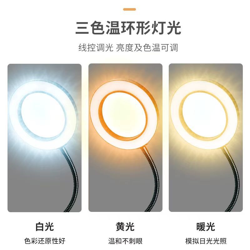 링 디밍 학습 독서 책상 램프 뷰티 문신 셀프 타이머 라이브 채우기 라이트 돋보기 데스크탑 클립 라이트