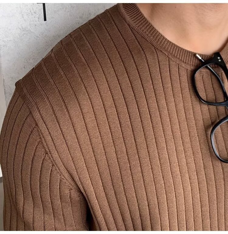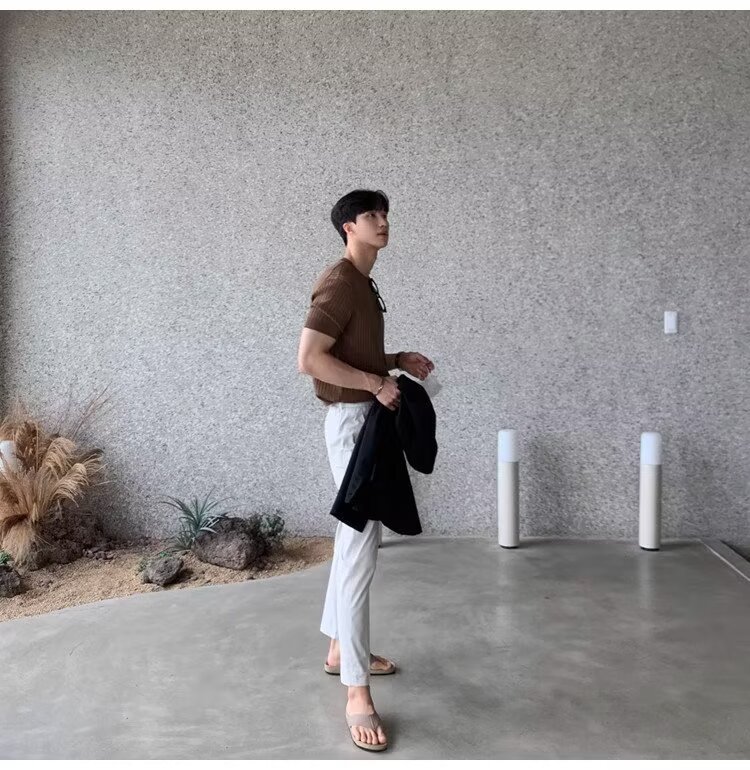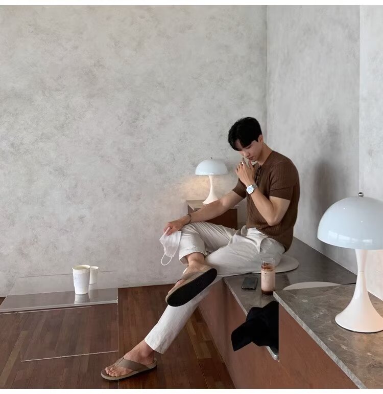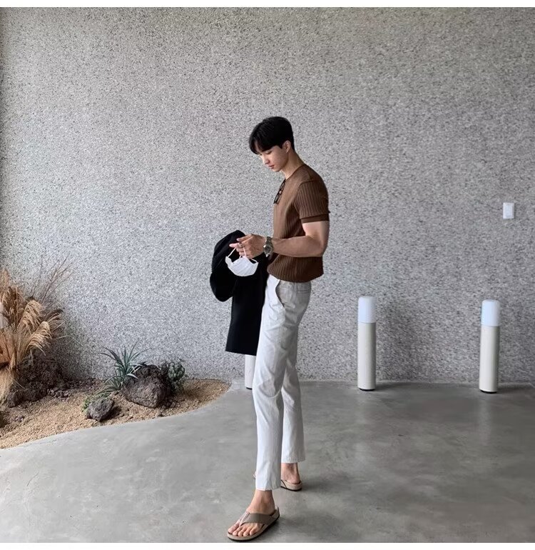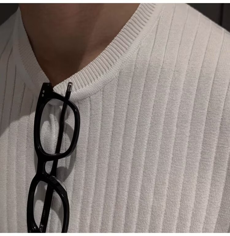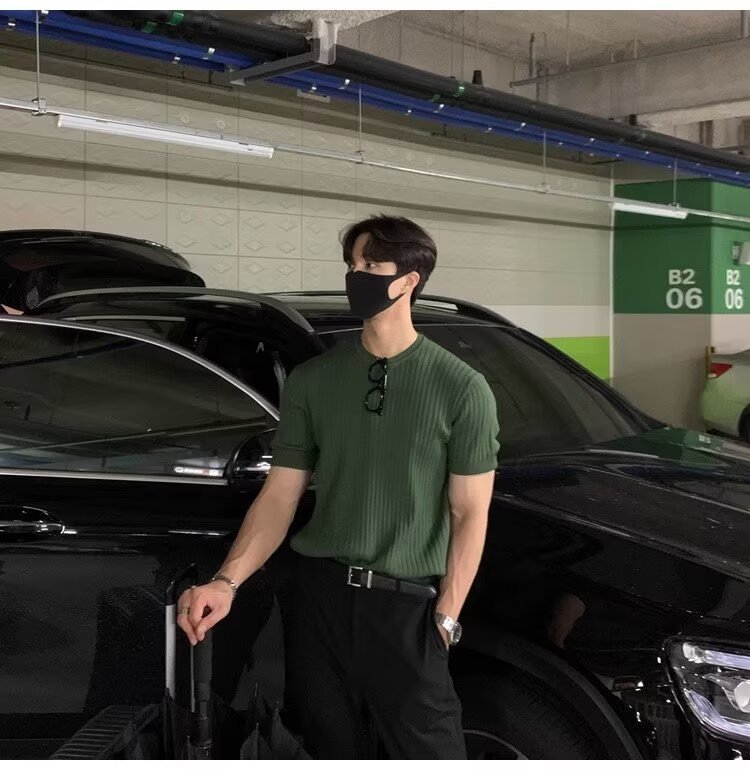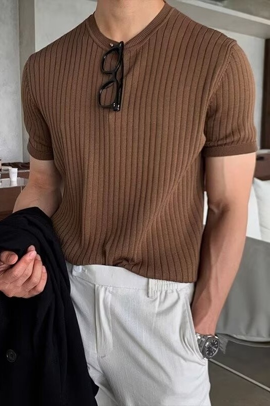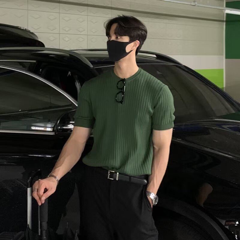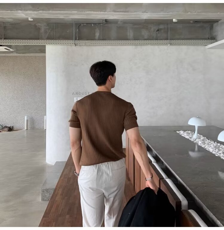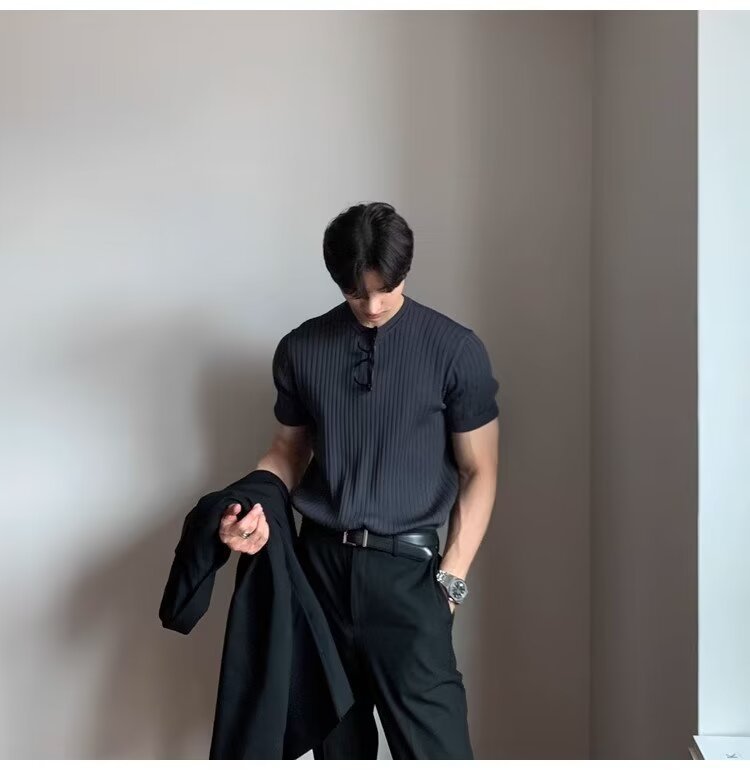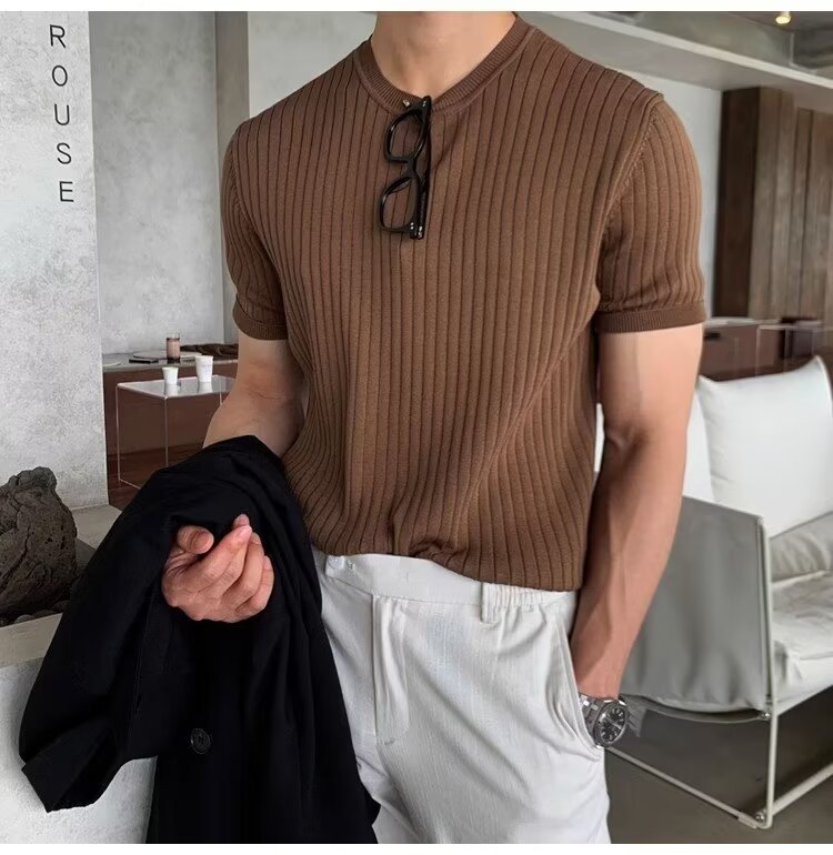 반팔 셔츠 남성 여름 신작 반팔 비즈니스 캐주얼 니트 티셔츠 라운드 넥 슬림 기질 반팔 남성상의