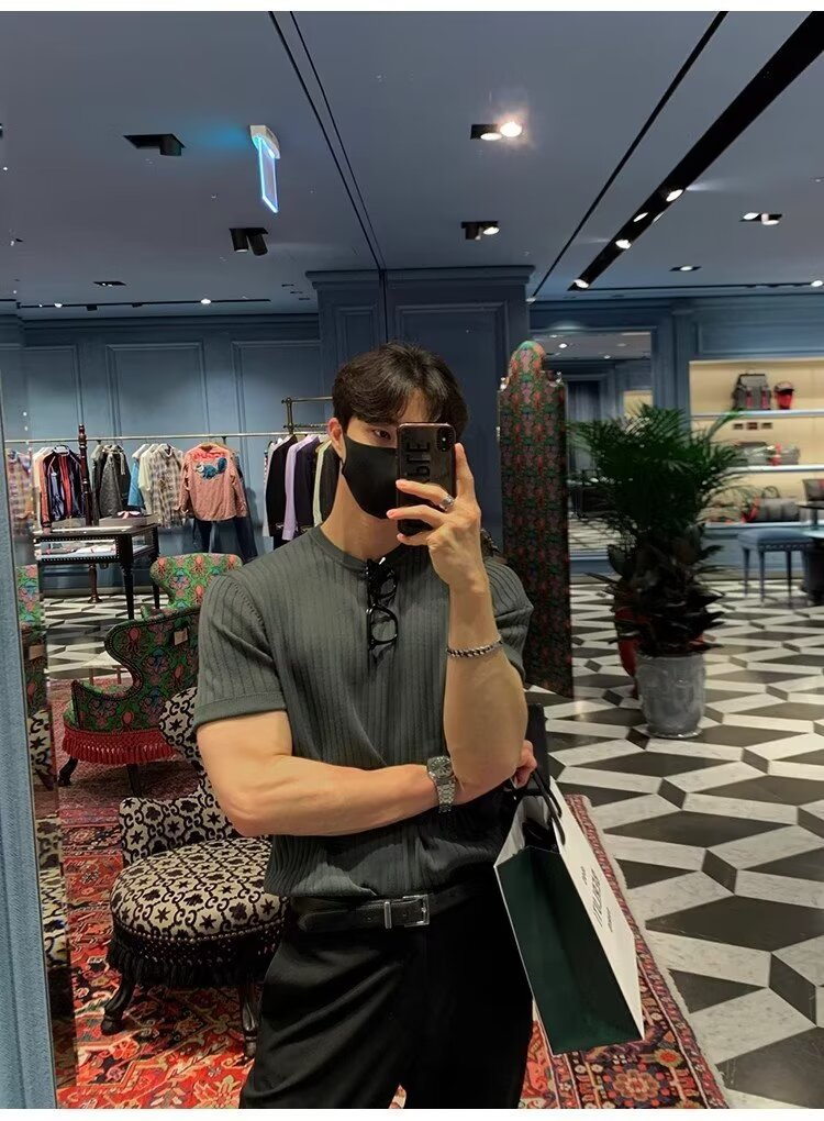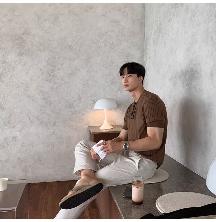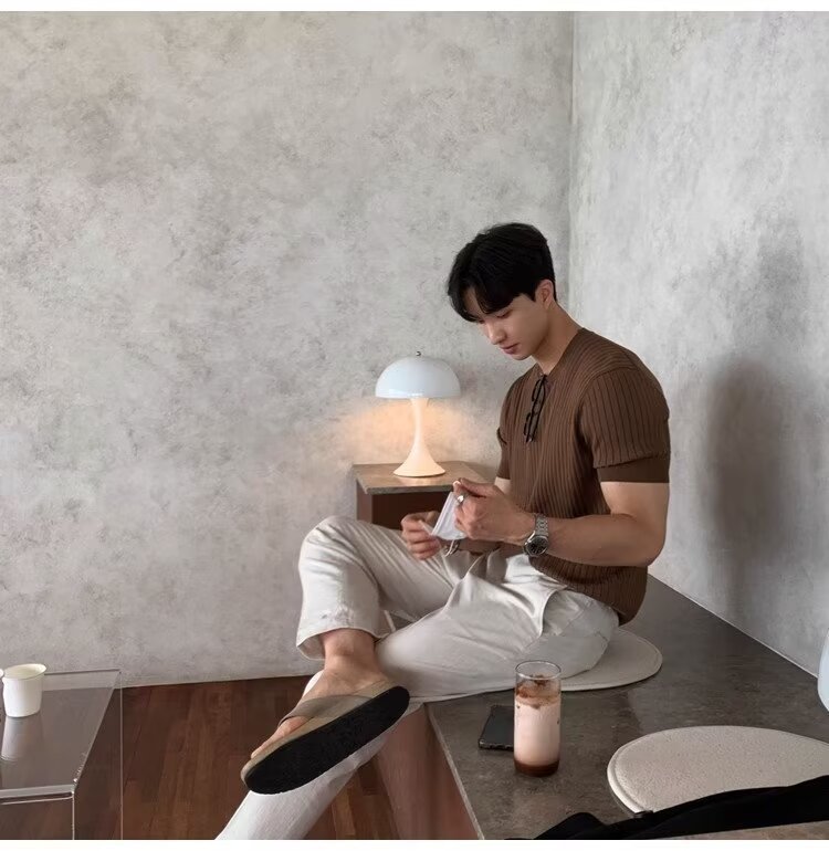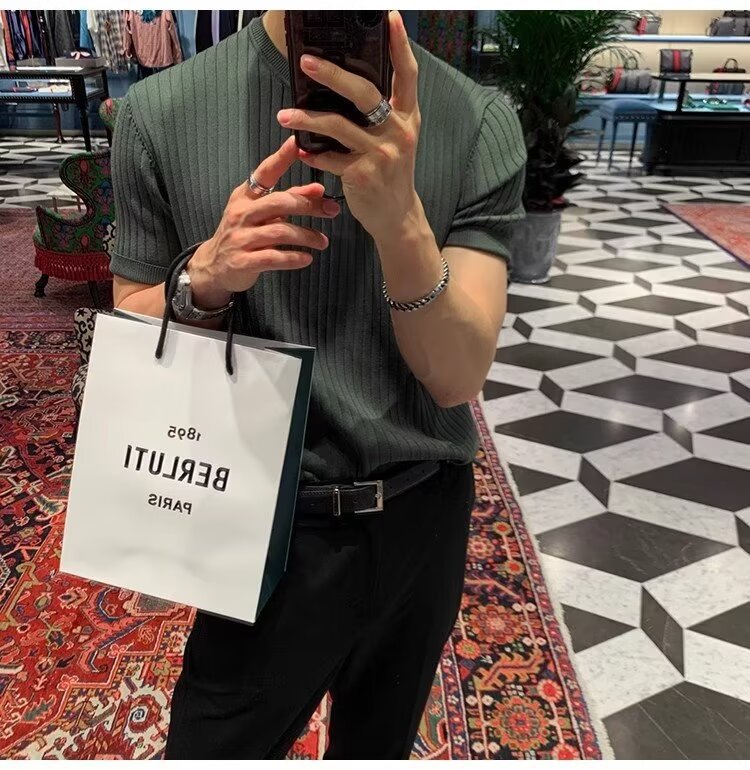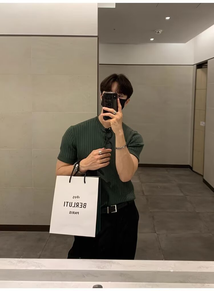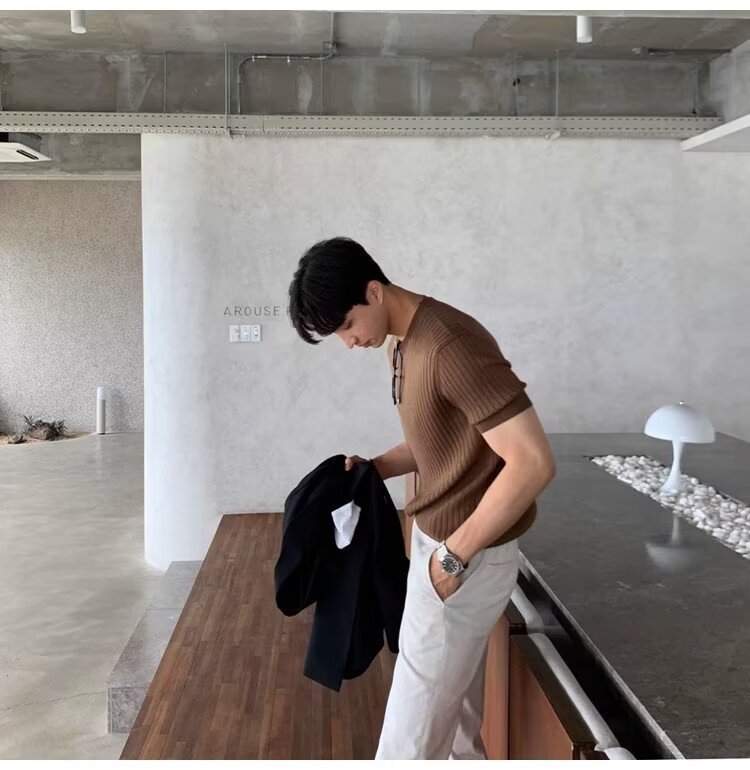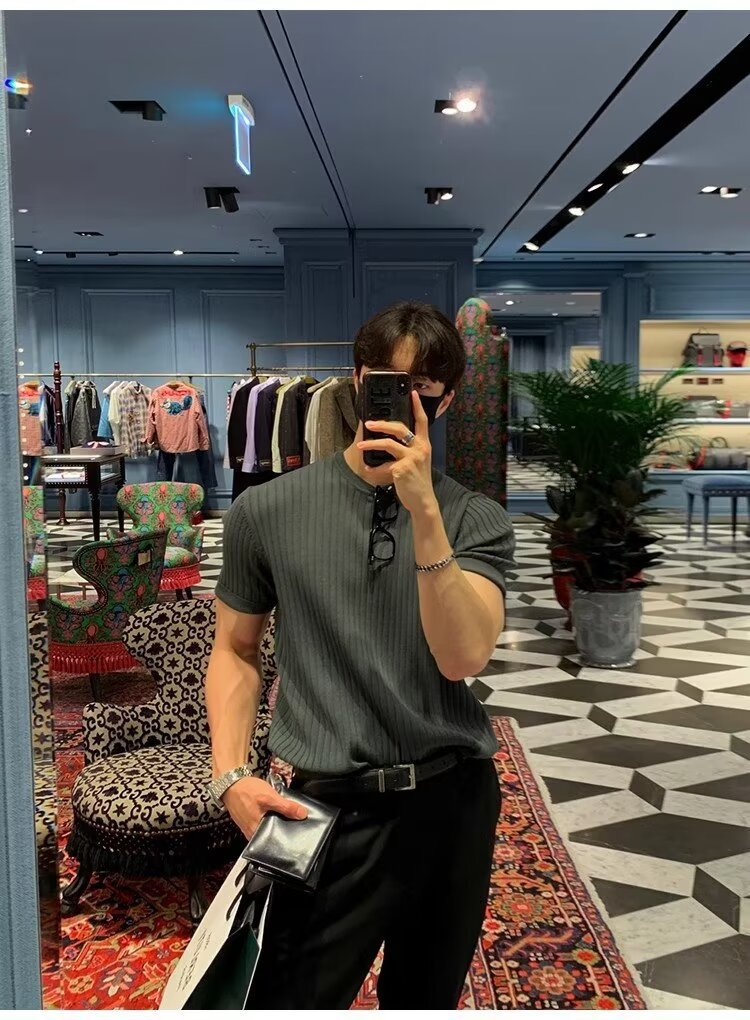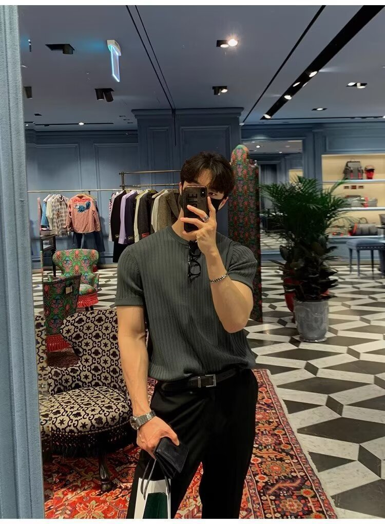반팔 셔츠 남성 여름 신작 반팔 비즈니스 캐주얼 니트 티셔츠 라운드 넥 슬림 기질 반팔 남성상의스토어 가기