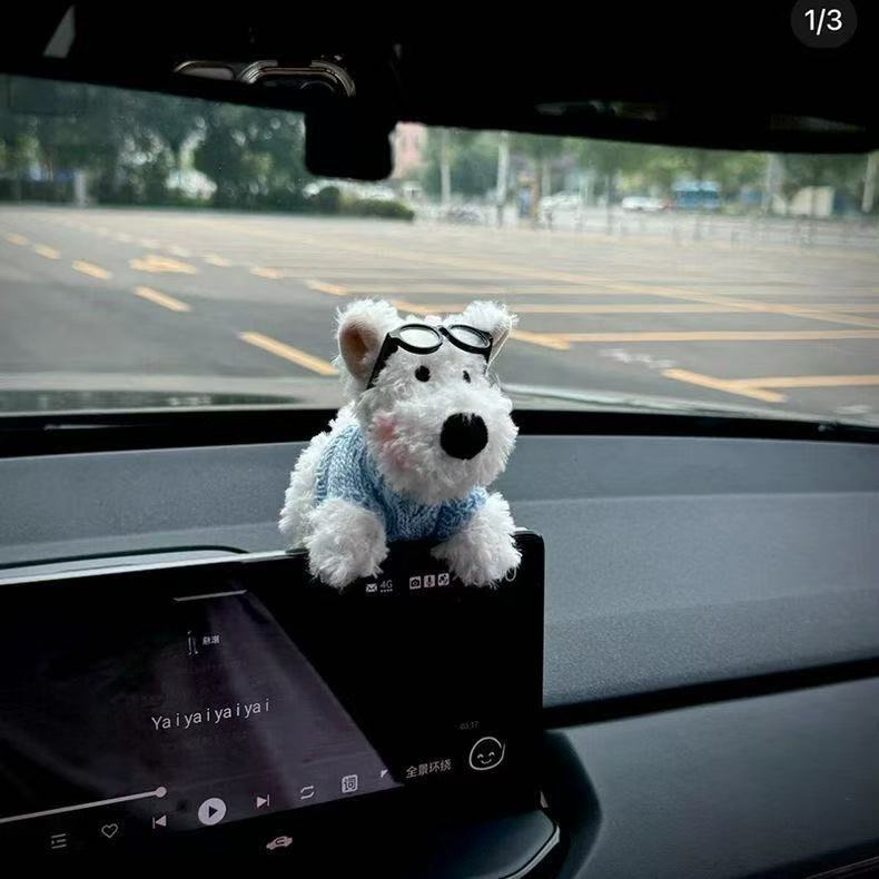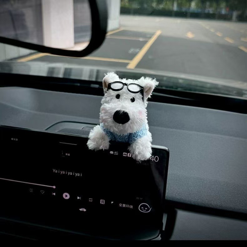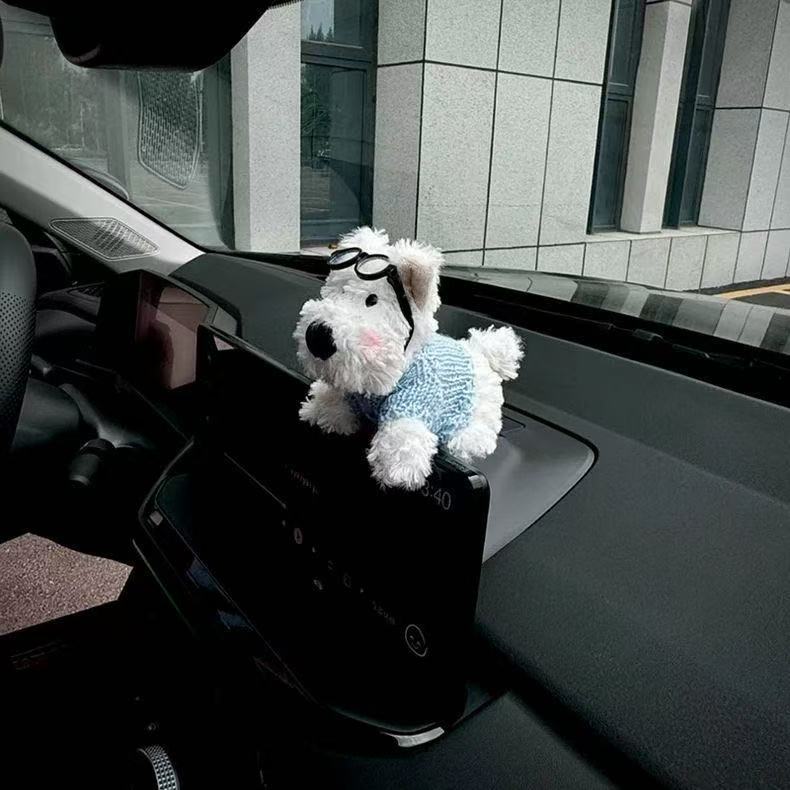 귀여운 웨스트 하이랜드 강아지 자동차 중앙 제어 화면 장식품 봉제 인형 인형 자동차 장식 자동차 인테리어 액세서리