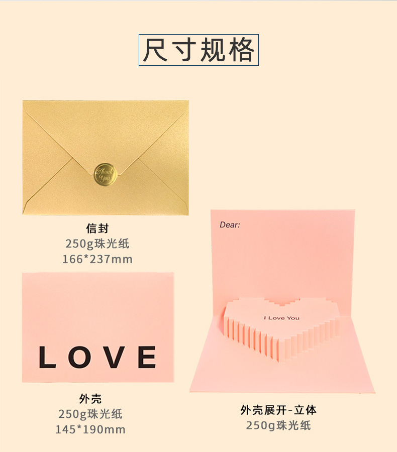 발렌타인 데이 인사말 카드 창조적 인 3 차원 하이 엔드 핑크 소녀가 남자 친구를 보내는 작은 카드 축복 생일 인사말 카드